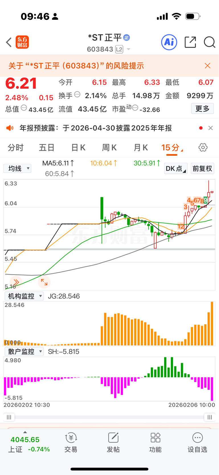 $*ST正平(SH603843)$ 今天出了好多散户,很多人还是被慧慧的公告吓到了。