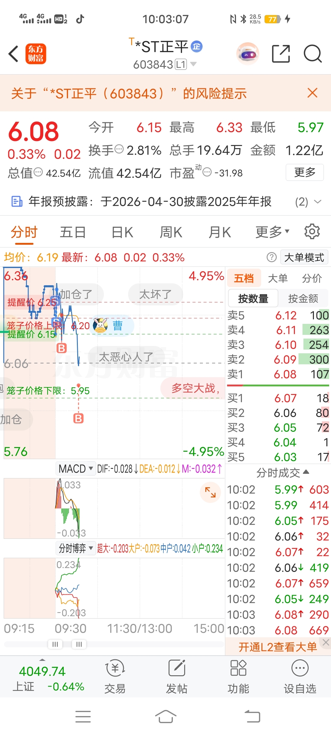 $*ST正平(SH603843)$ 你有本事跌停,