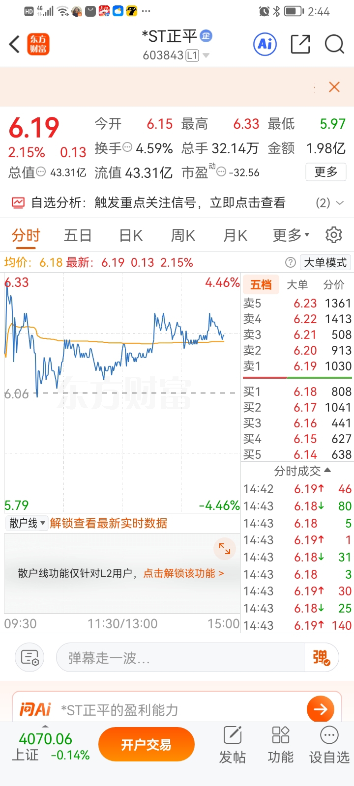$*ST正平(SH603843)$ 就剩十分钟,不买的下周跟大资金抢筹。$*ST东易(SZ002713)$ $*ST沐邦(SH603398)$
