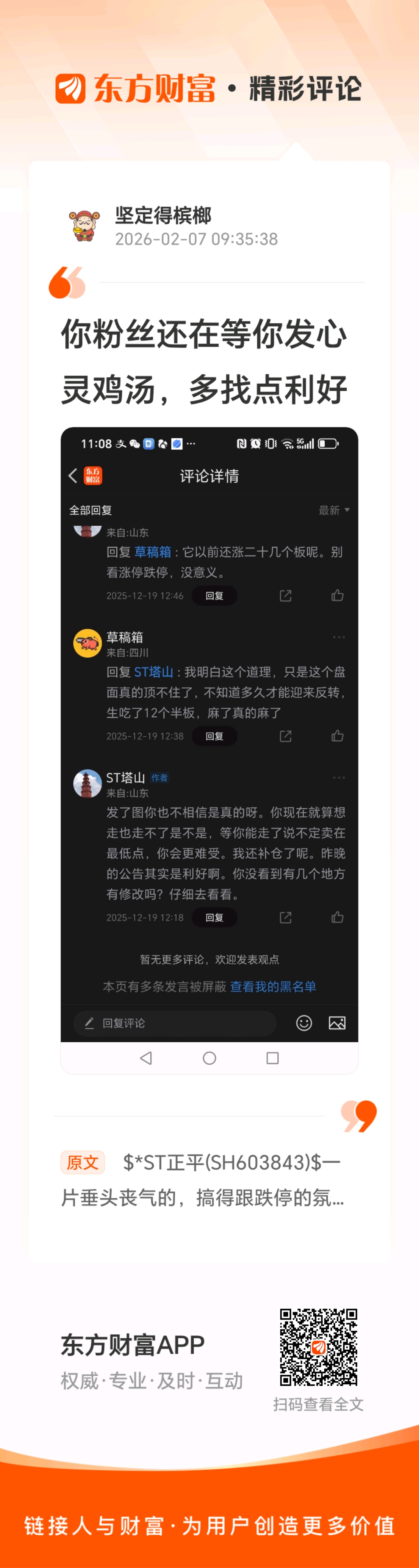 温馨提示: 1.根据《证券法》规定,禁止编造、传播虚假信息或者误导性信息,扰乱证券市场;2.用户在本社区发表的所有资料、言论等仅代表个人观点,与本网站立场无关,不对您构成任何投资建议。用户应基于自己的独立判断,自行决定证券投资并承担相应风险。《东方财富社区管理规定》