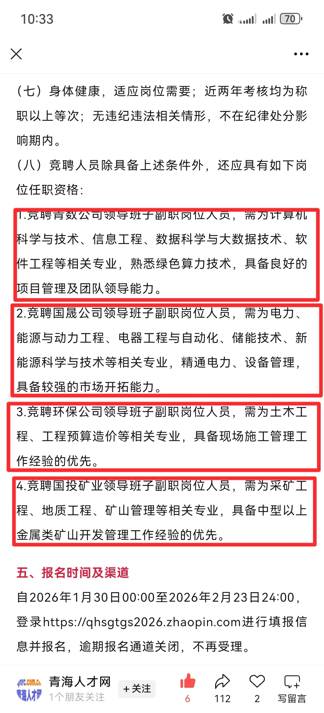 $*ST正平(SH603843)$  下面有五张图,前两张是青海国投的招聘信息,时间线是从1月30号开始~2月23日截止。主要招聘岗位分别是算力、电力、环保、矿产四个管理层储备副职。后三张图是全国破产重整网上公布的正平股份投资人招募遴选公告,时间线:2月5日~3月3日,招募要求:产业协同,业务赋能,有效整合资源(算力、矿产为主)实现转业升级(由基建转型为矿产资源与算力发展)。最后其他项基本为附加项:本次公开招募不适用与《中.华人.民共.和.国招标投标法》,最终解释权归临时管理人所有!这是近期我能看到的明牌,时间线上来看青海国投招聘岗位储备副职在前(几天),随后正平投资人招募公告要求产业协同,资源整合,业务赋能。并且本次招募面向全国企业,但是不适用于招标投标法(都知道招标投标法大概意思就是我要把正平打包卖出去,谁出价高我就卖给谁),但是在这里不适用!解释权归临时管理人金杜所有(防止有人抢生意,提前做好对策)。咱们现在在回头一看,青海国投入驻正平的可能性有多大?可是又说回来,这么大的利好,为什么股价就是不涨?首先时间紧任务重,毕竟还没签投资人协议,协议价也是有规定的,必须按均线价格的一半来。其次那咱们就不得不提正平高管,虽然说是明牌,但是正平可以不承认啊,就耍赖,我利好消息一条不出,投资人招募公告我也不发,就天天发风险提示公告,我还发投资人招募风险提示!你就说哪个散户能忍受这种事无忌惮的操.盘,虽然水平低,但是有用。你也没有实打实的证据,也对他无可奈何!还只能深闷气。还有就是为什么一直出不了重点监控?毫无疑问公司自己想进去,你以为是上交所无聊?天天盯着正平?想太多了。首先监控期内,大资金买是受限制的,但是卖是不受限制,这就方便庄家控价了,其次如果正平出监管了,都知道流通股7亿股,除开十大股东手里的30%,外面还有70%的筹码,如果庄家用大量的筹码压价控价,万一被别有用心的人吃了,控制权是不是就被丢出去了?所以在有限的时间内控价,进监管是正平最好的选择。因为正平要的是控价和不丢筹码。说白了,现在就是明牌和大家玩,青海国投大概率入驻正平,具体是联合体入驻还是个体入驻,对正平来说都是涅磐重生。都是史诗级利好。正平现目前也是铁了心要控价,无论他怎么控价,我都不希望同车的战友被甩下车。因为预期越来越近了。黎明的曙光就在眼前,让我们共同见证山顶的风光。