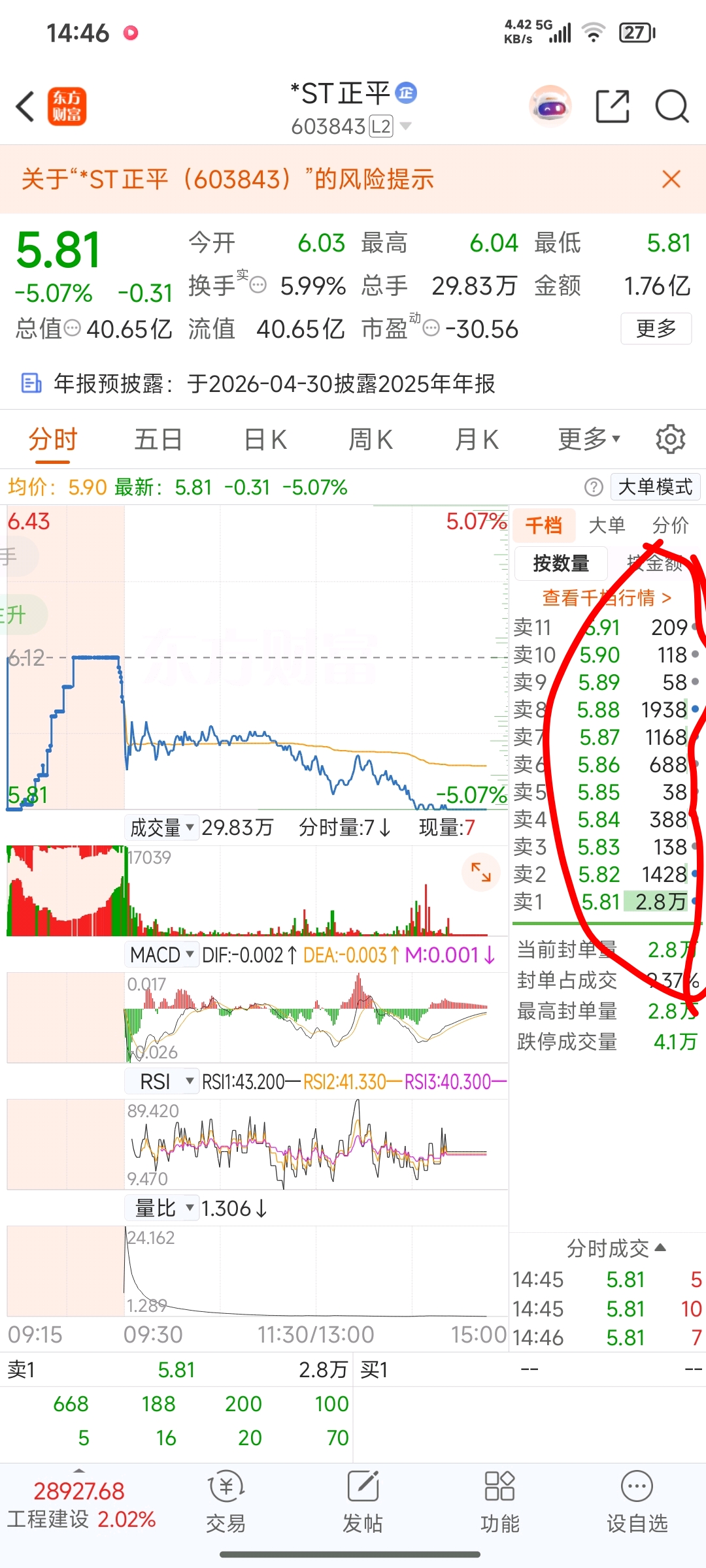 $*ST正平(SH603843)$ 操盘手连弹幕都看吗