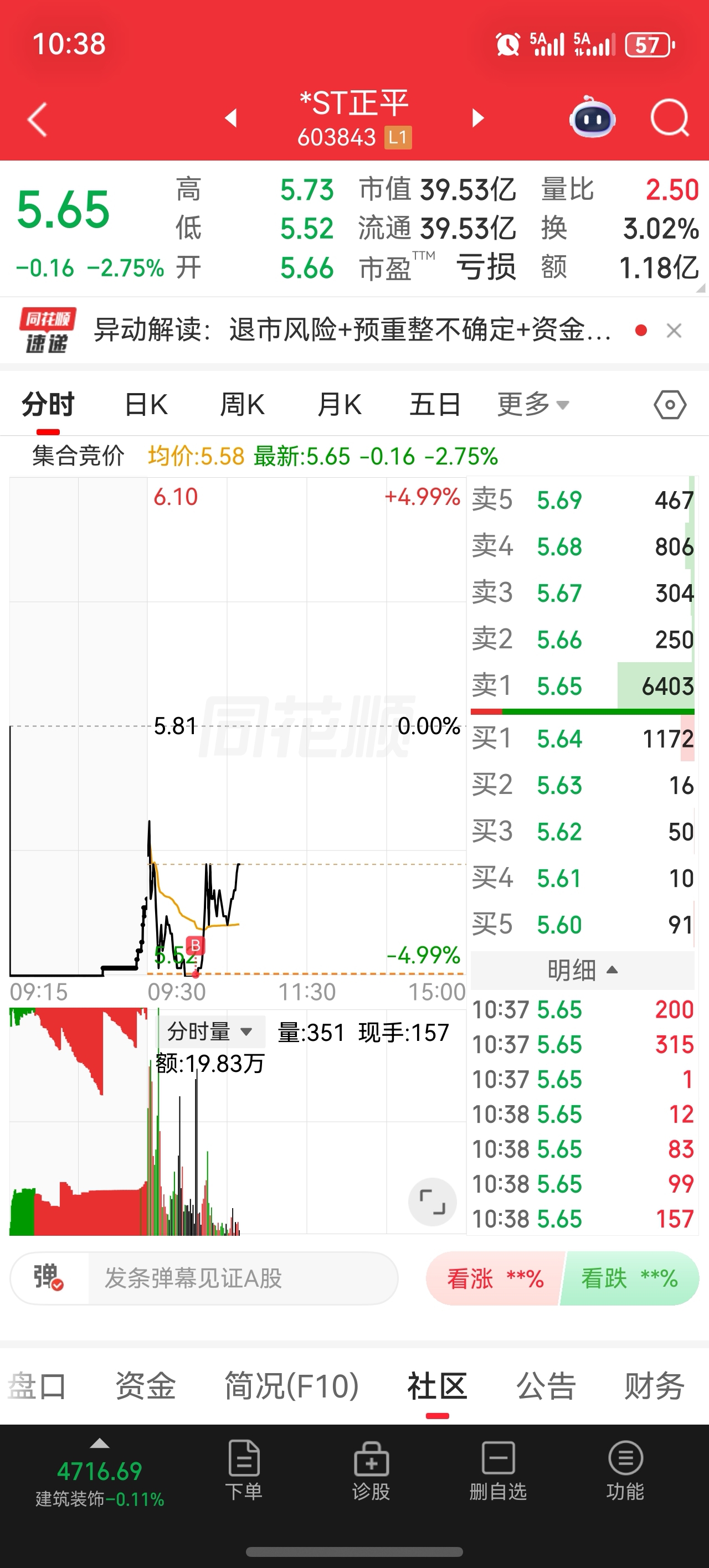 $*ST正平(SH603843)$ 人为压盘痕迹明显,招募投资人也这样打压。慧慧,离婚吧