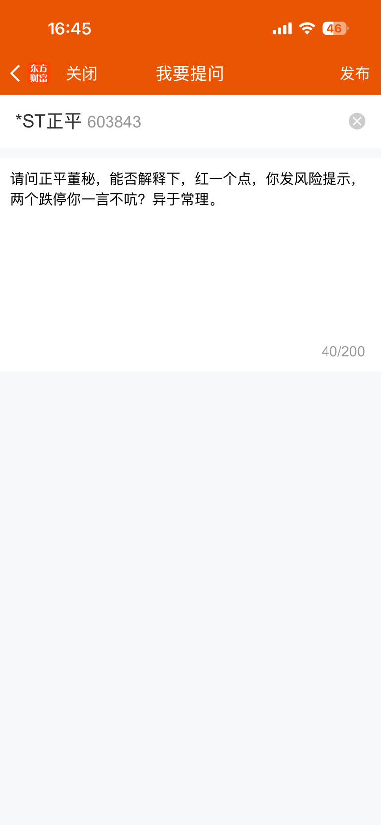 $*ST正平(SH603843)$ 王惠出来解释下。