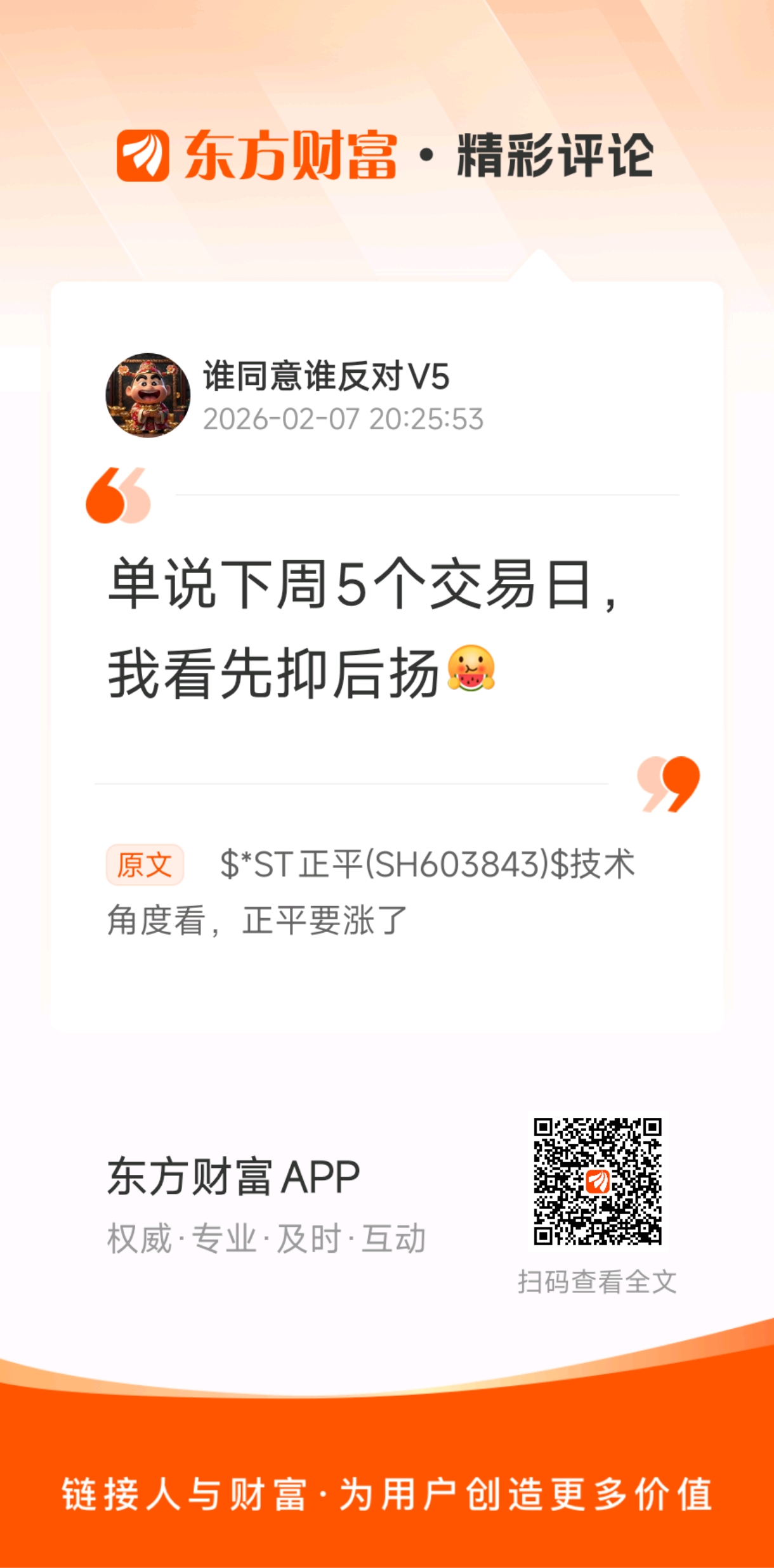 温馨提示: 1.根据《证券法》规定,禁止编造、传播虚假信息或者误导性信息,扰乱证券市场;2.用户在本社区发表的所有资料、言论等仅代表个人观点,与本网站立场无关,不对您构成任何投资建议。用户应基于自己的独立判断,自行决定证券投资并承担相应风险。《东方财富社区管理规定》
