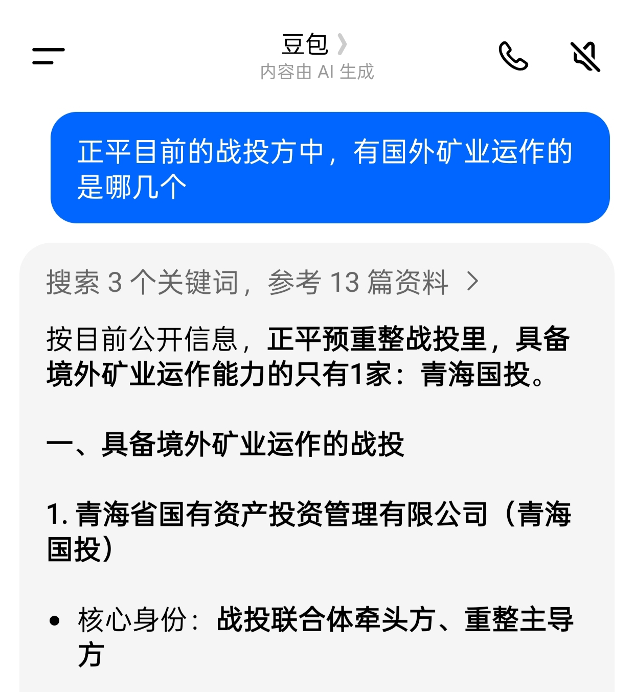 正平的战投方遴选内容,包括了业务协同要求。正平国外有不少矿业。目前只有青海国投进