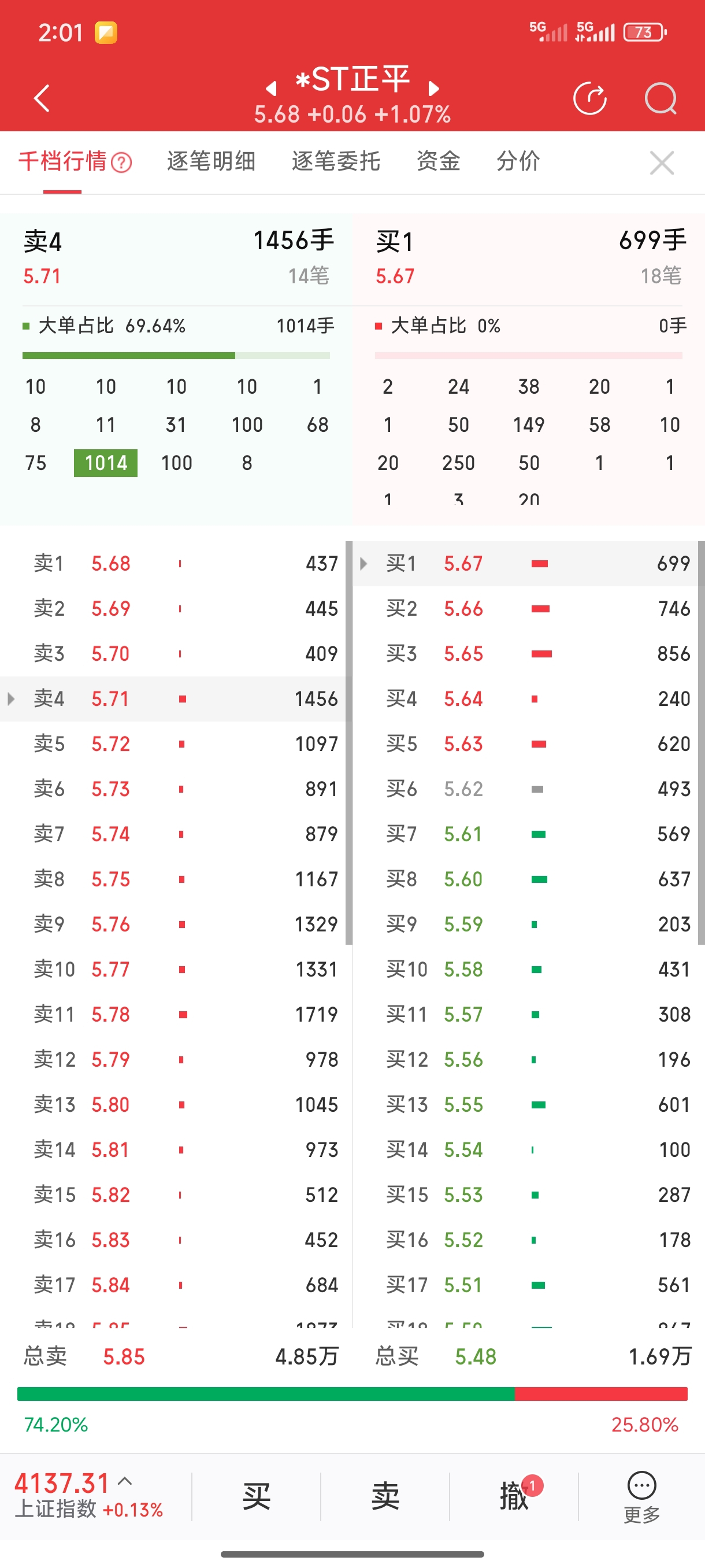 $*ST正平(SH603843)$ 主力又用大单来压了,