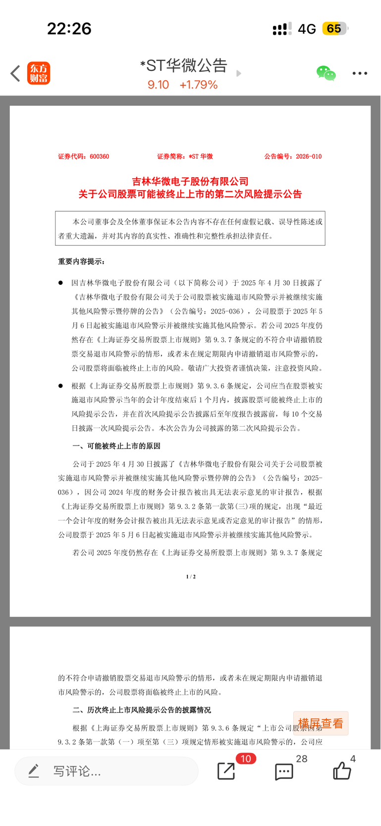 $*ST正平(SH603843)$ 参考华微,铁定摘帽的,还每个月发风险提示