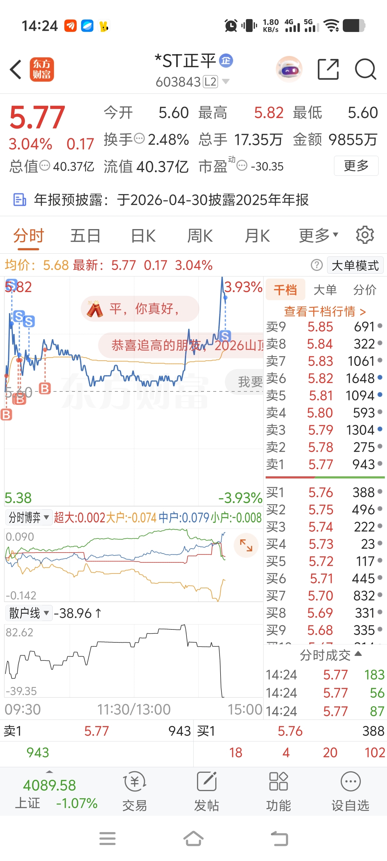 $*ST正平(SH603843)$ 底仓不动,过年快乐!