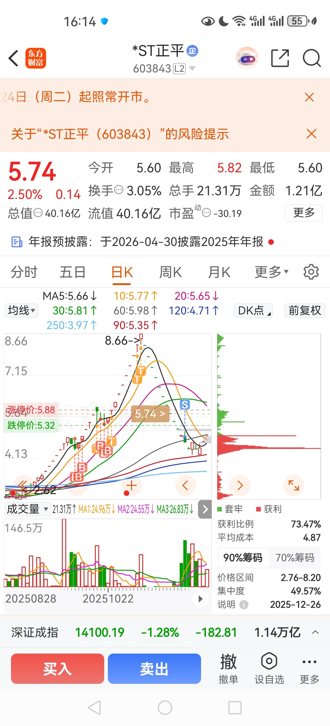 $*ST正平(SH603843)$ 三月份重整有机会,再来一波大的吗。