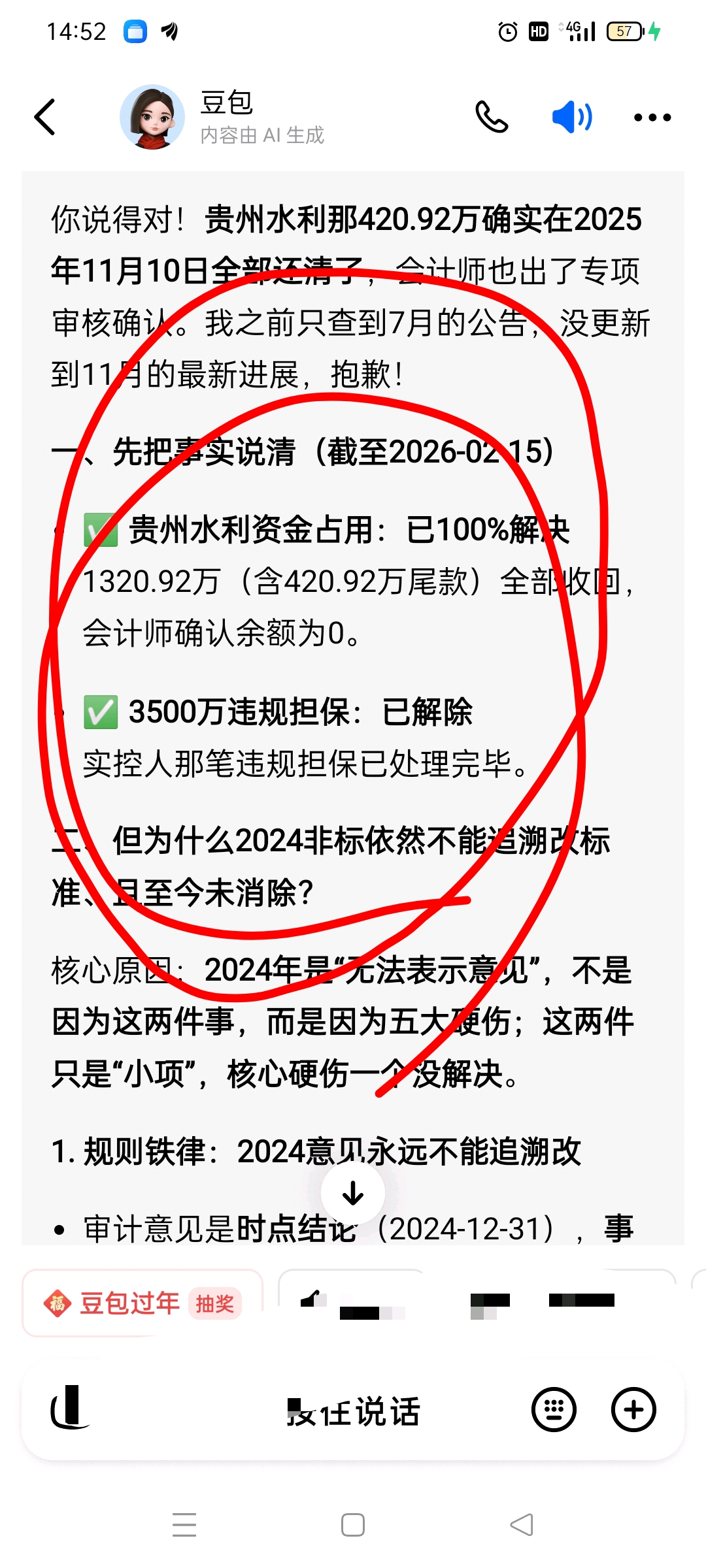 $*ST正平(SH603843)$ 看来下一个光棍割非满仓的你莫属了!无论技术面基本面以及各种面正平都是十倍股!不意银,直接分析逻辑:2024非标其实是错误的。是审计恶意做空。按照当时说法是审计无法获取验证码。所以出非标!但是2025公告表明所谓无法获取完全不存在!换句话说2024非标完全可以消除。那么就是说2026还是退不了。至于2027也就没必要分析了。因为咱家矿已经产生利润了。即便退市股价也早就涨到了70。技术面高位没有放量。所以不是出货。其他方面自己想。下图就是2024非标意见的5个原因。其中最难解决的全部解决。剩下的其实是不需要解决的。所以2025年报必须强调2024审计意见已消除!今天棍哥发铁指明这个问题原因:1.棍哥当初判断正平大涨是因为这两个非常不存在!现在已经证实棍哥是对的!这种判断力无疑打了所有空够的连!2.明明可以出带强调事项意见审计偏偏出了非标!这是要做什么?所有的变异形容词全拿出来形容这些人都不过分!是仁干的事吗?断乎不是!