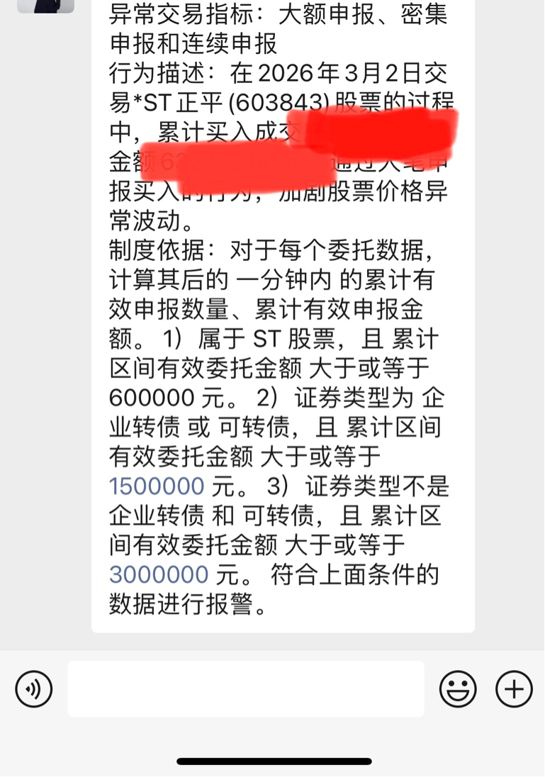 $*ST正平(SH603843)$ 异动每次买都提示,但是不影响,可以买