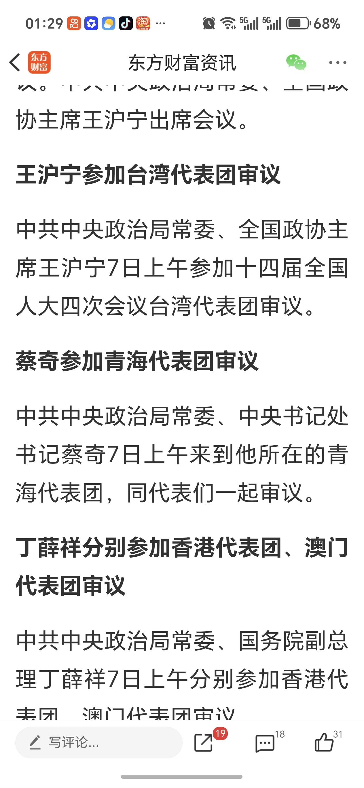 7号晚间新闻联播,就只提到了四个代表团,台湾,青海,香港,澳门,不知啥用意