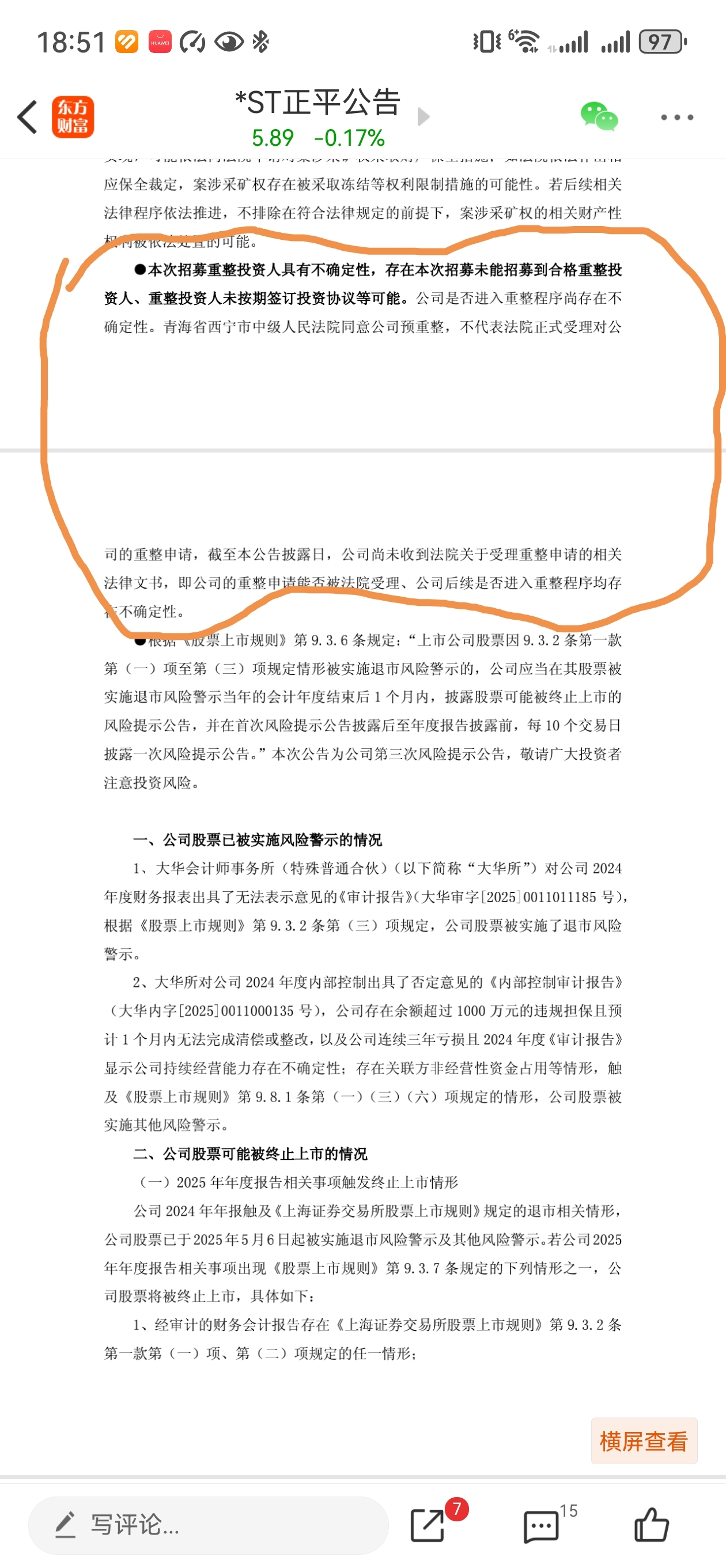 $*ST正平(SH603843)$ 这个公告说的很明白,战投已经报名和保证金已经缴纳,但还在审核中是否招到合格投资人具有不确定性,真的搞利空有一套啊!