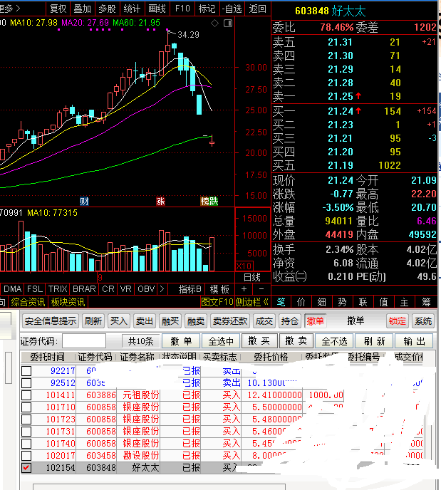 9月25十点:银座一样庄手法。好太太跌停我进场。这种拉涨法,明显就是庄股了。今天