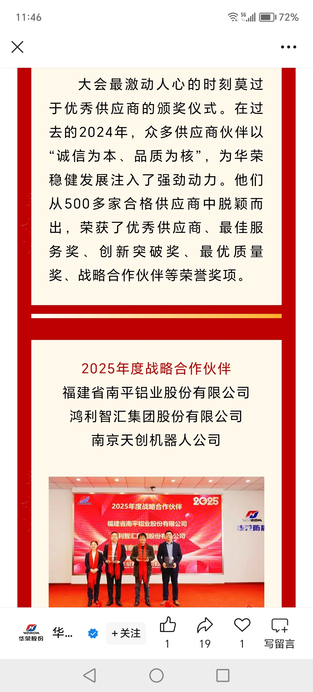 第一、第二位战略合作伙伴是华荣股份的大供应商,第三位除了能供应给公司机器人外,只有机器人零部件了。经过华荣进行防爆改造或由双方联合开发,由华荣出品。