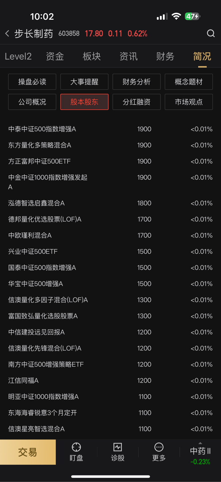 有这么多的基金用少量持股的方式在关注步长制药。