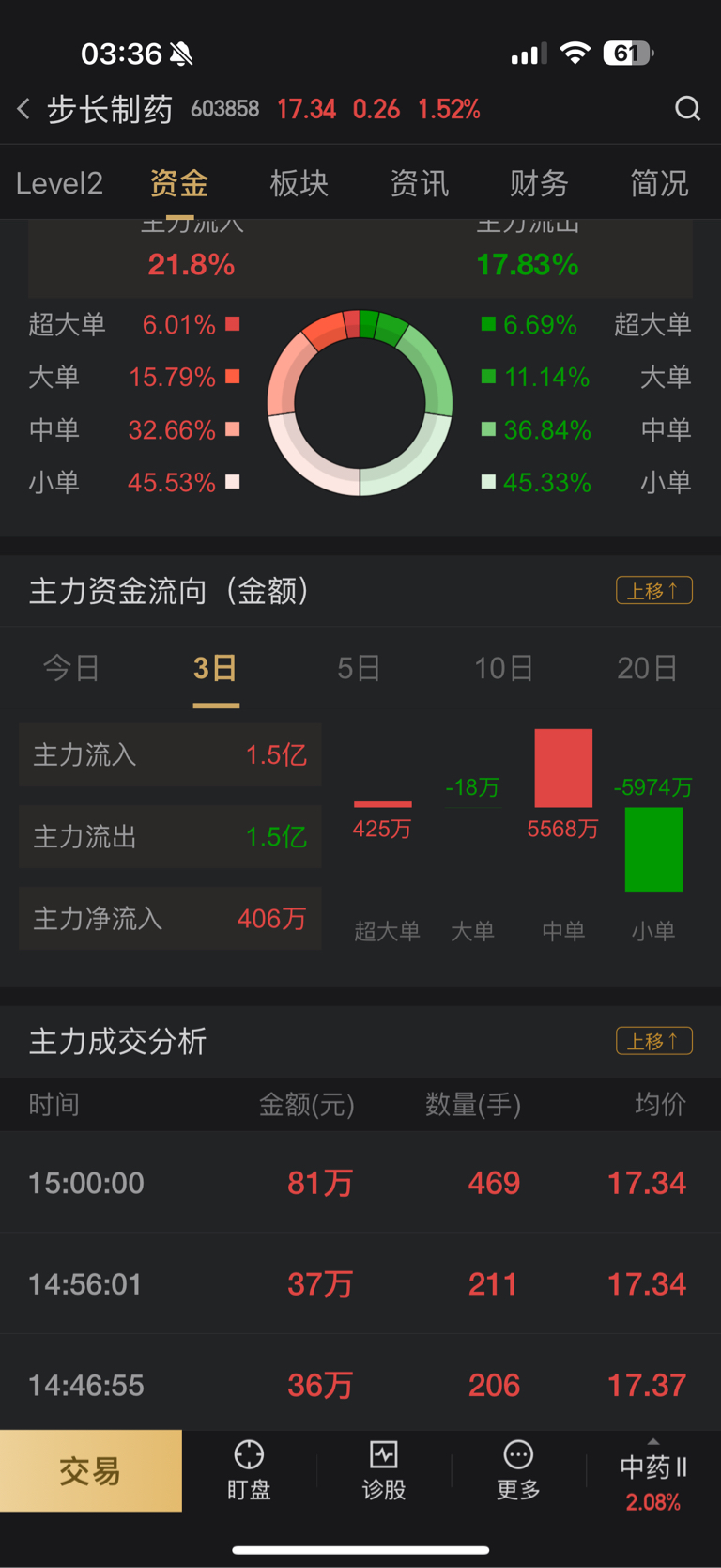 $步长制药(SH603858)$ 大阴线,三天主力资金净流入几百万,这何解?诱空吸筹吗?