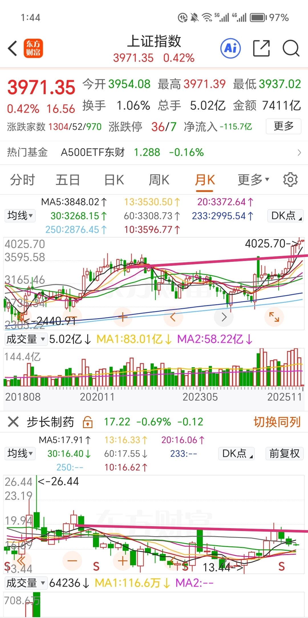 $步长制药(SH603858)$ 上证指数早就突破去年10月8日的新高了,这齁庄还在去年10月8日下面压着,这齁庄太能作了。