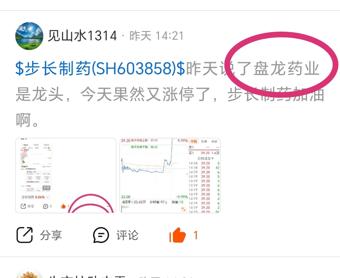 $步长制药(SH603858)$ 步长加油啊,你学习下盘龙药业啊。我提前两天就讲了盘龙药业是龙头,今天可能又要涨停了。