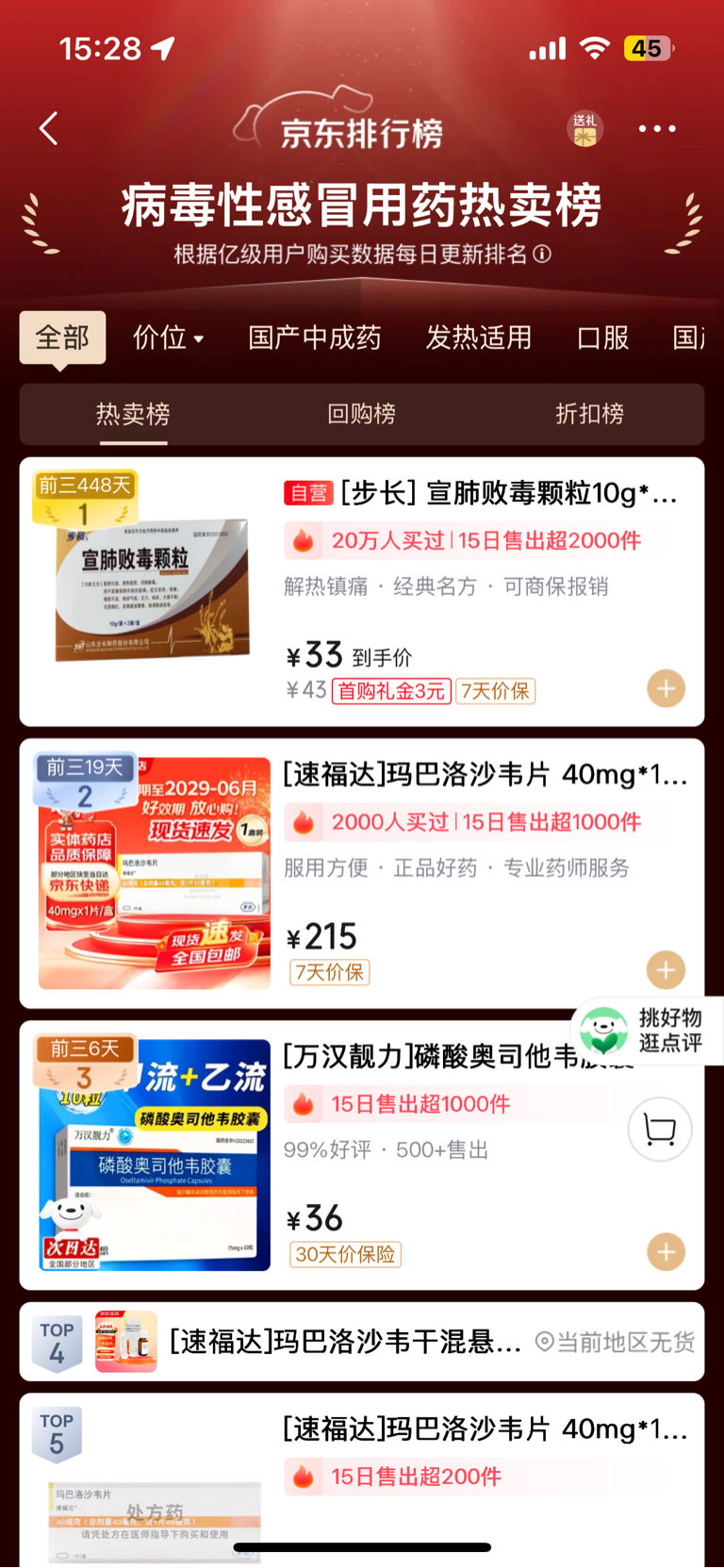 甲流热门事件了。宣肺败毒和流感疫苗都有,而且京东排名常年第一。