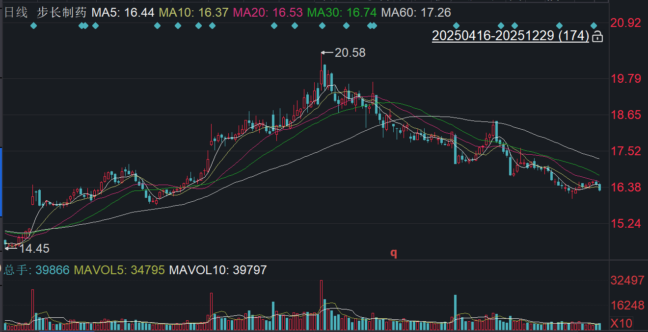 二级市场上,截至12月29日收盘,步长制药下跌1.16%报16.26元/股,总市值约171.47亿元,今年来公司股价近乎“原地踏步”。