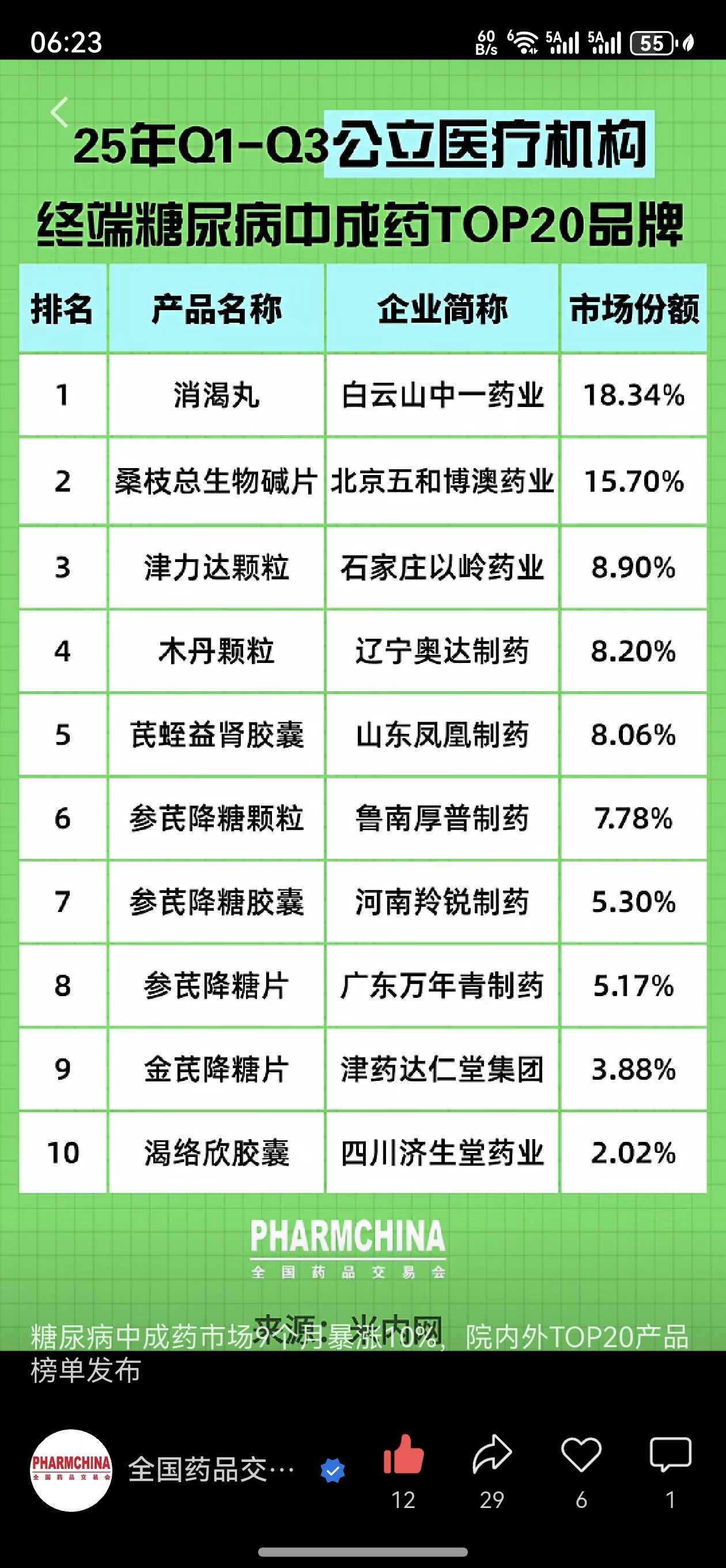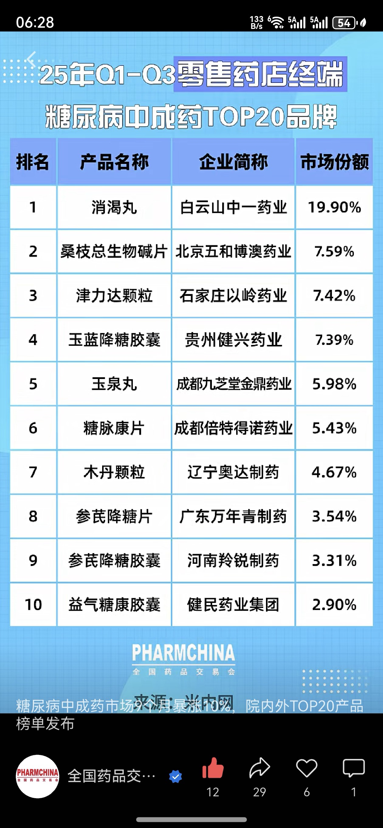 糖尿病中成药前二十,步长制药占了三个名额