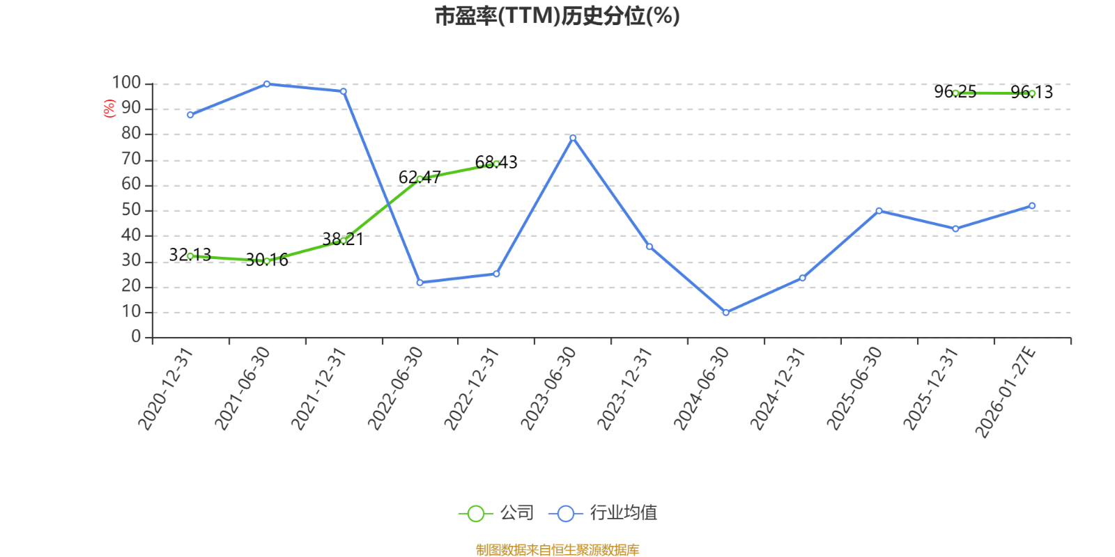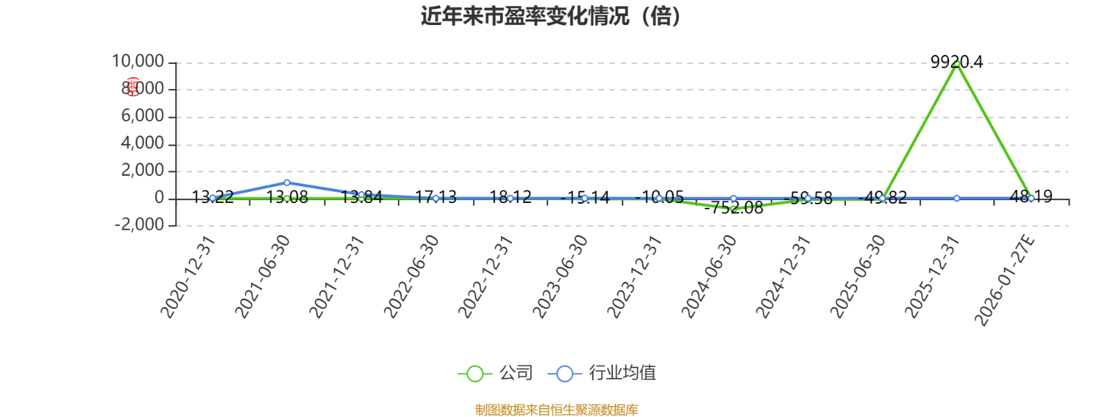 市盈率、市净率为负时,不显示当期分位数,会导致折线图中断。