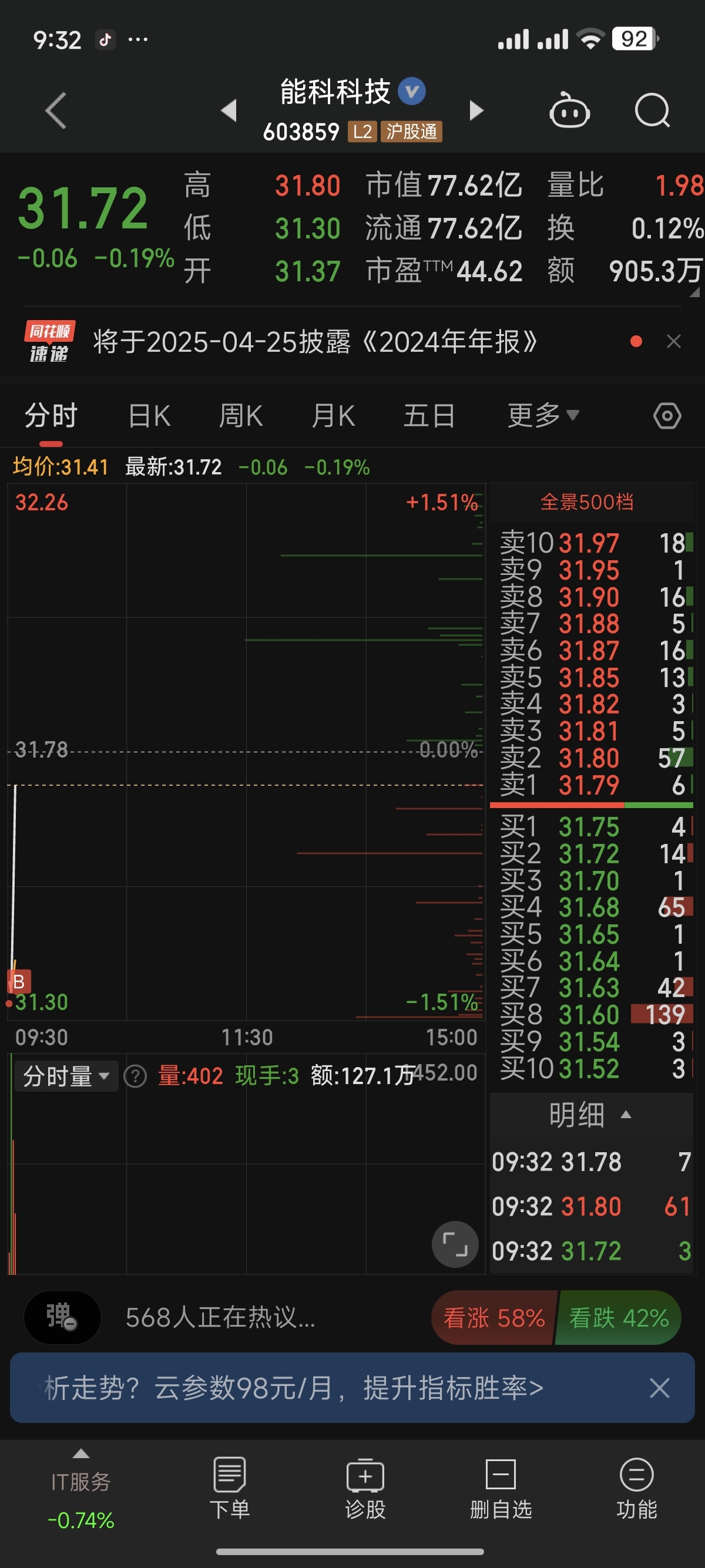 $能科科技(SH603859)$ 一个字,干,支持能科