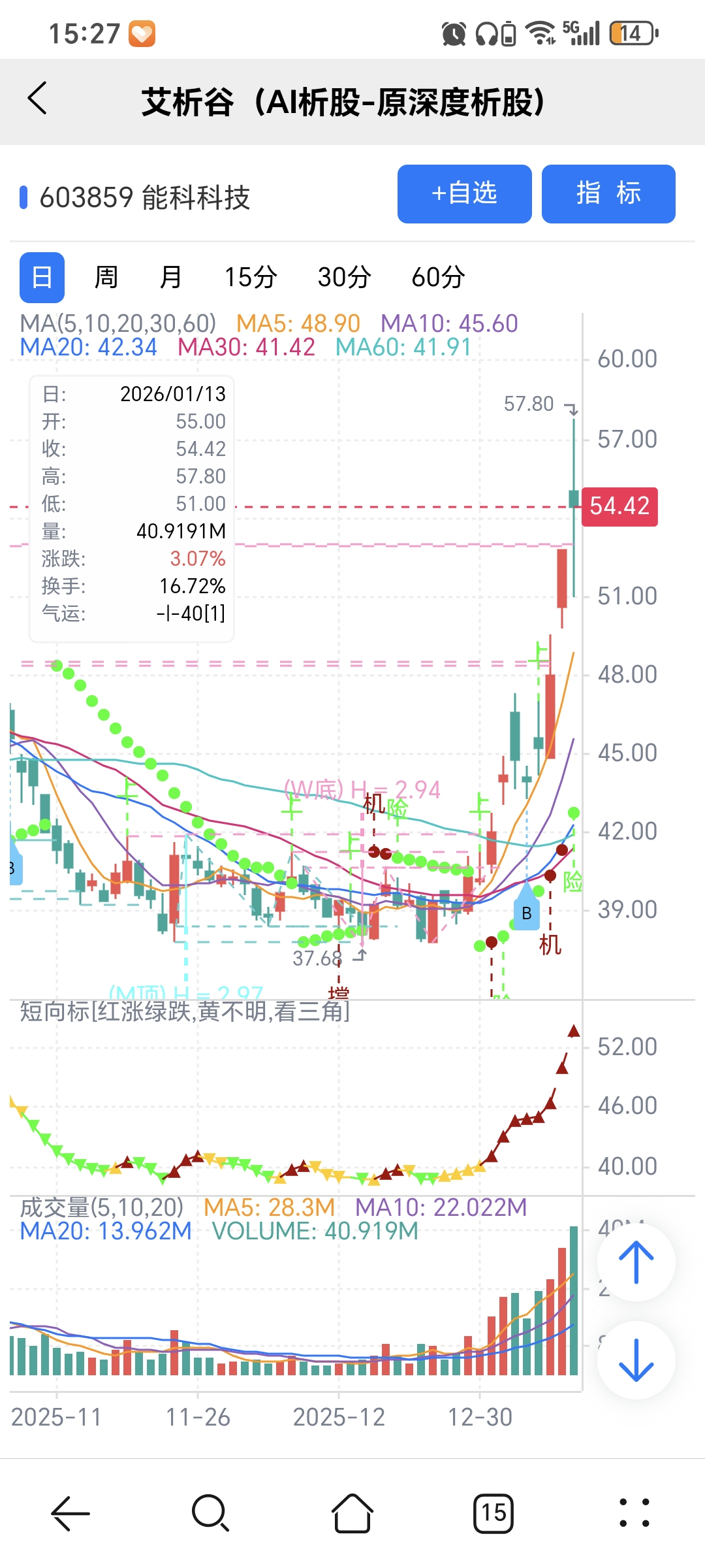 AI模型选股,量化指标识别关键点,简单技术分析确定买卖点,结合量化和人工综合运用,才能有优势。能科科技