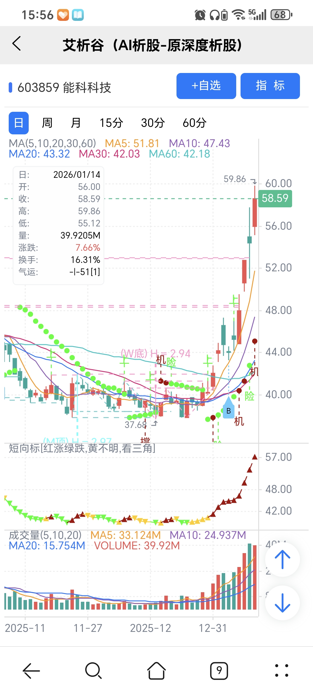 AI模型选股,量化指标识别关键点,简单技术分析确定买卖点,结合量化和人工综合运用,才能有优势。能科科技