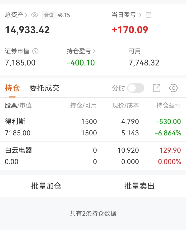$白云电器(SH603861)$ 仓位没管理好,居然拿了17天,等得利斯出场以后半仓滚动单调,不是每天都满仓