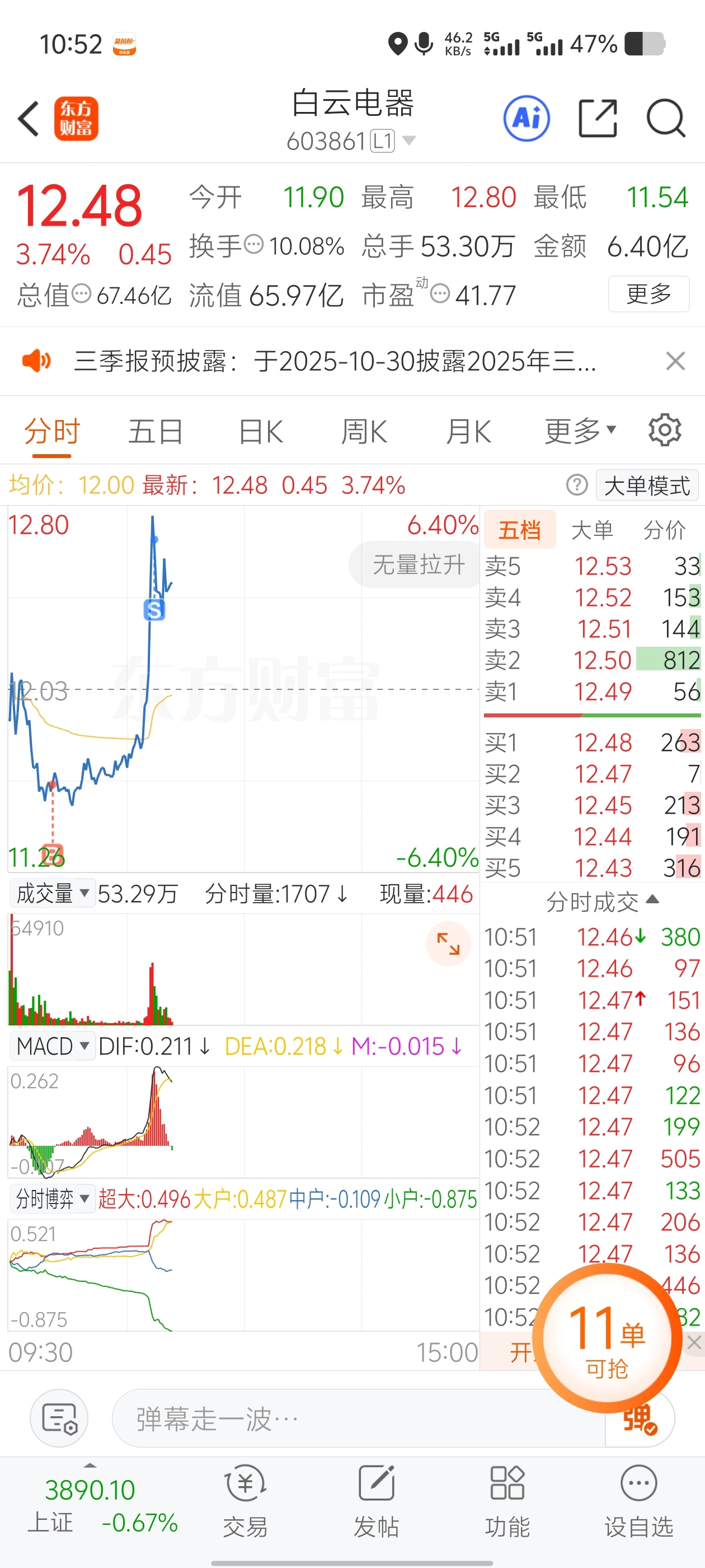 $白云电器(SH603861)$ 我先T一下,,,别慌