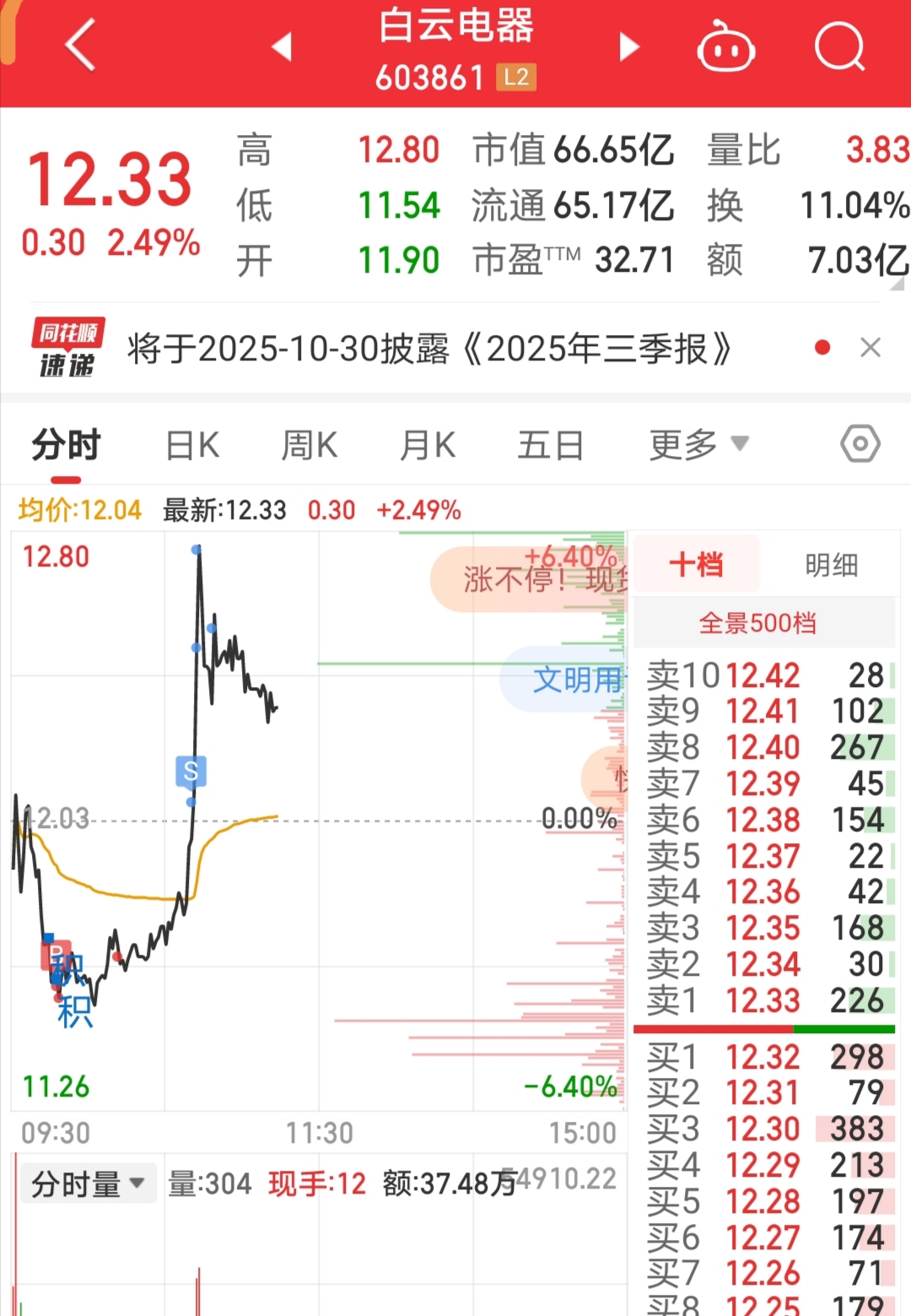 $白云电器(SH603861)$ 留点底仓,剩下的随便造咯
