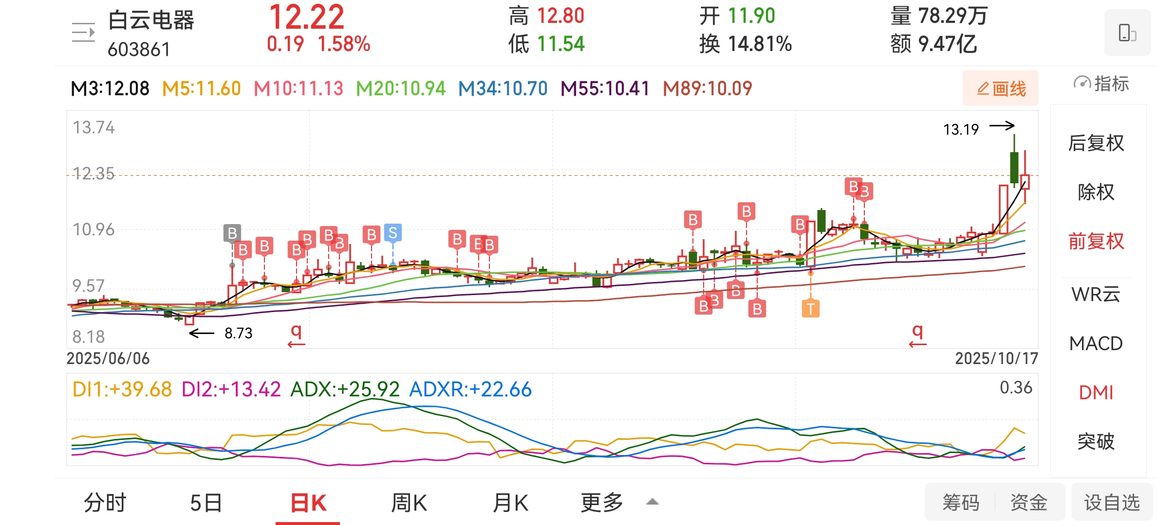 $白云电器(SH603861)$ 从6月27日开始买入,陆续加仓,直到全仓,我看评论看好的多,就再放一段时间,希望能收获。