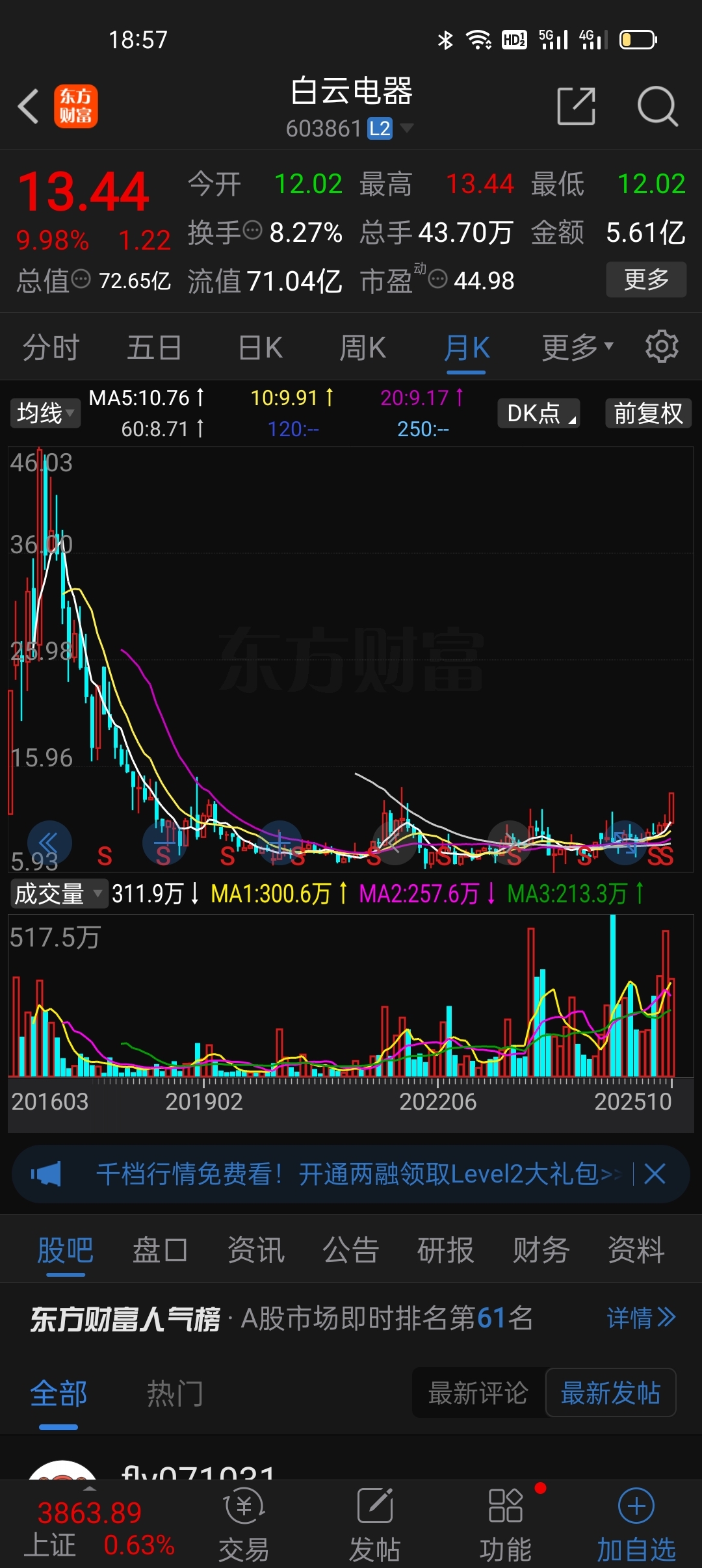 $白云电器(SH603861)$ 大底部突破了,数板开始
