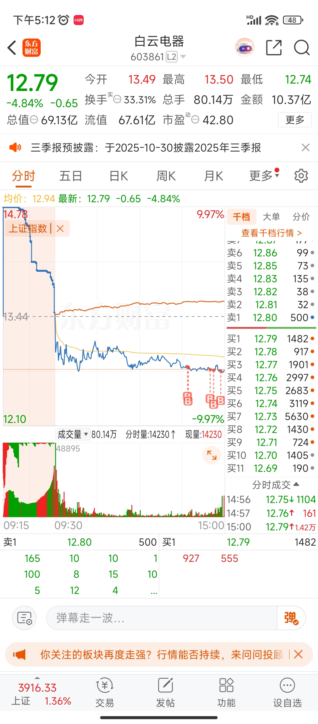 $白云电器(SH603861)$ 你们得感谢我帮你们拖住不然砸跌停了。我买了6手硬刚主力