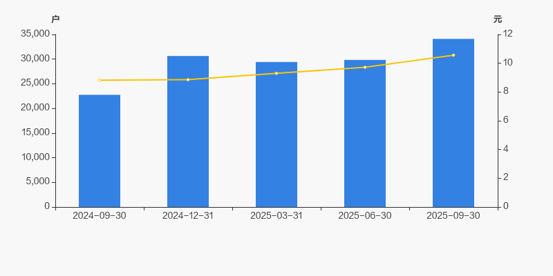 2024年9月30日至今,公司股东户数显著增长,区间涨幅为49.84%。2024年9月30日至2025年9月30日区间股价上涨19.79%。