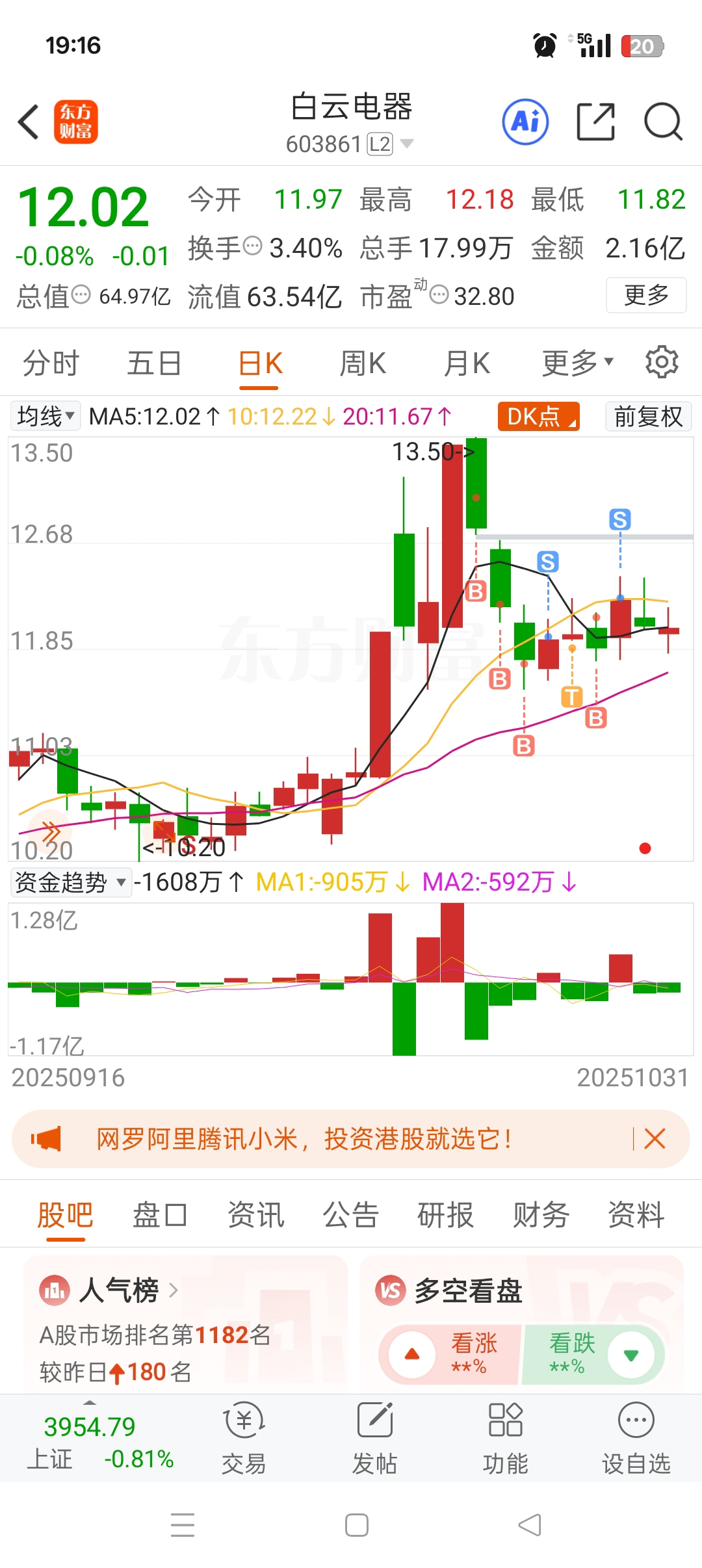$白云电器(SH603861)$ 不敢追了 小赚一笔