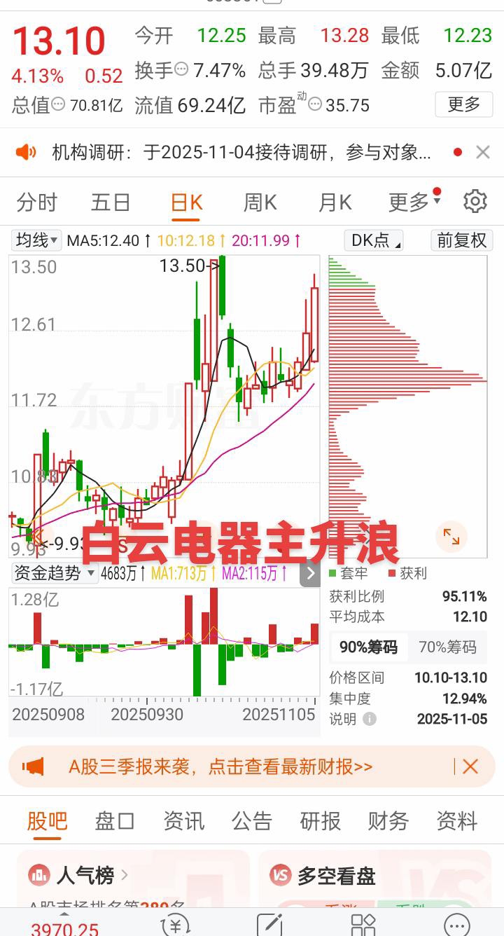 $白云电器(SH603861)$ 主升浪中。满仓买入。有肉吃。业绩好。中标大项目。业务饱满。