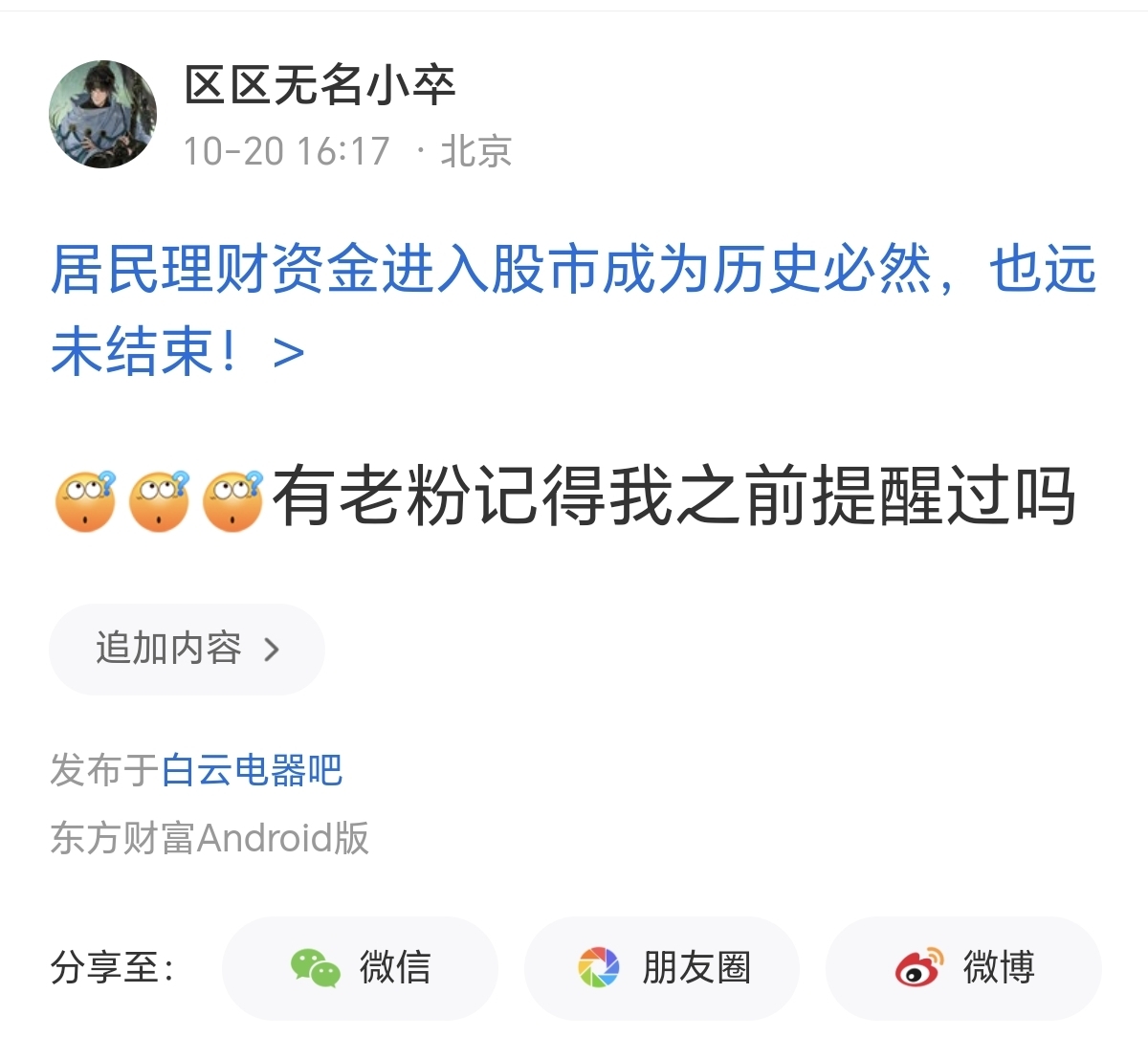 郑重声明:用户在财富号/股吧/博客等社区发表的所有信息(包括但不限于文字、视频、音频、数据及图表)仅代表个人观点,与本网站立场无关,不对您构成任何投资建议,据此操作风险自担。请勿相信代客理财、免费荐股和炒股培训等宣传内容,远离非法证券活动。请勿添加发言用户的手机号码、公众号、微博、微信及QQ等信息,谨防上当受骗!