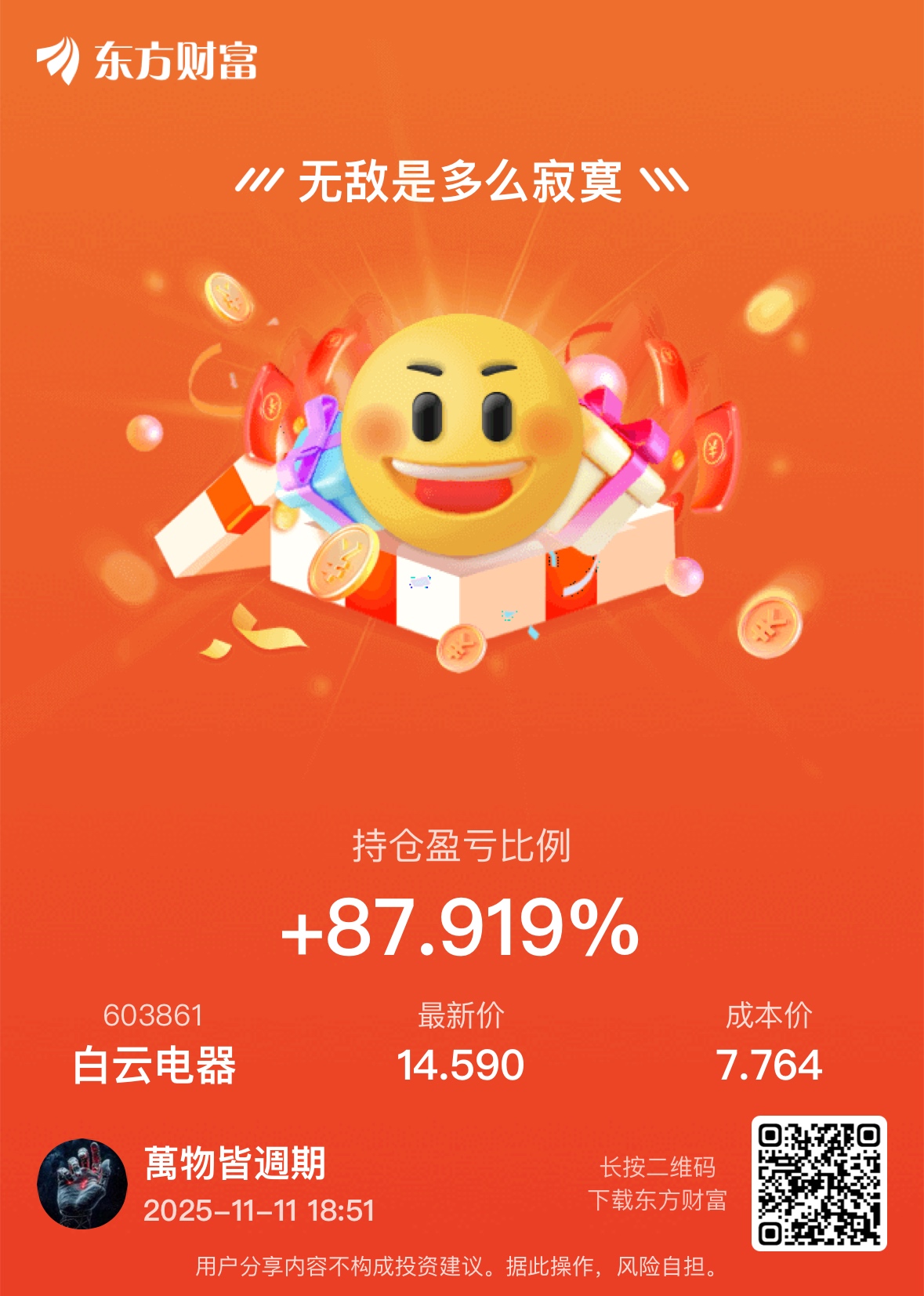 $白云电器(SH603861)$ 一切手段,在我面前都是小把戏,我知道你的目的,我不说