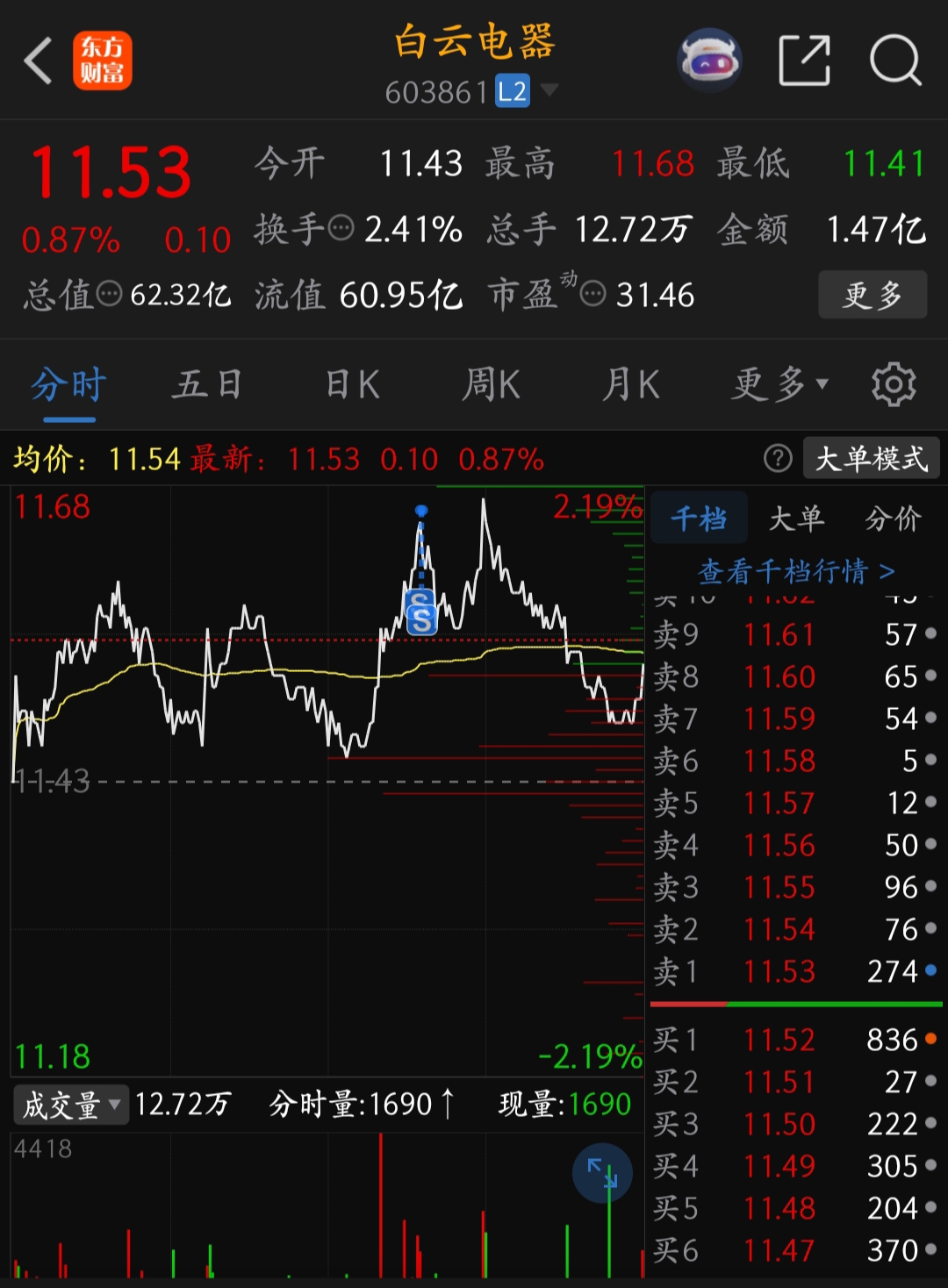 $白云电器(SH603861)$ 清仓认亏出局,14.08成本,再也不见
