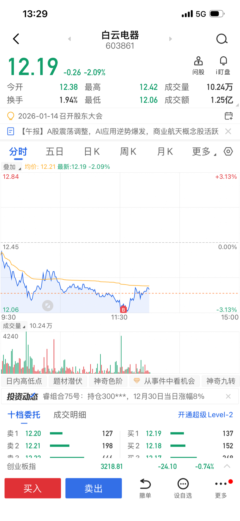 $白云电器(SH603861)$ 12.06割肉了多少啊