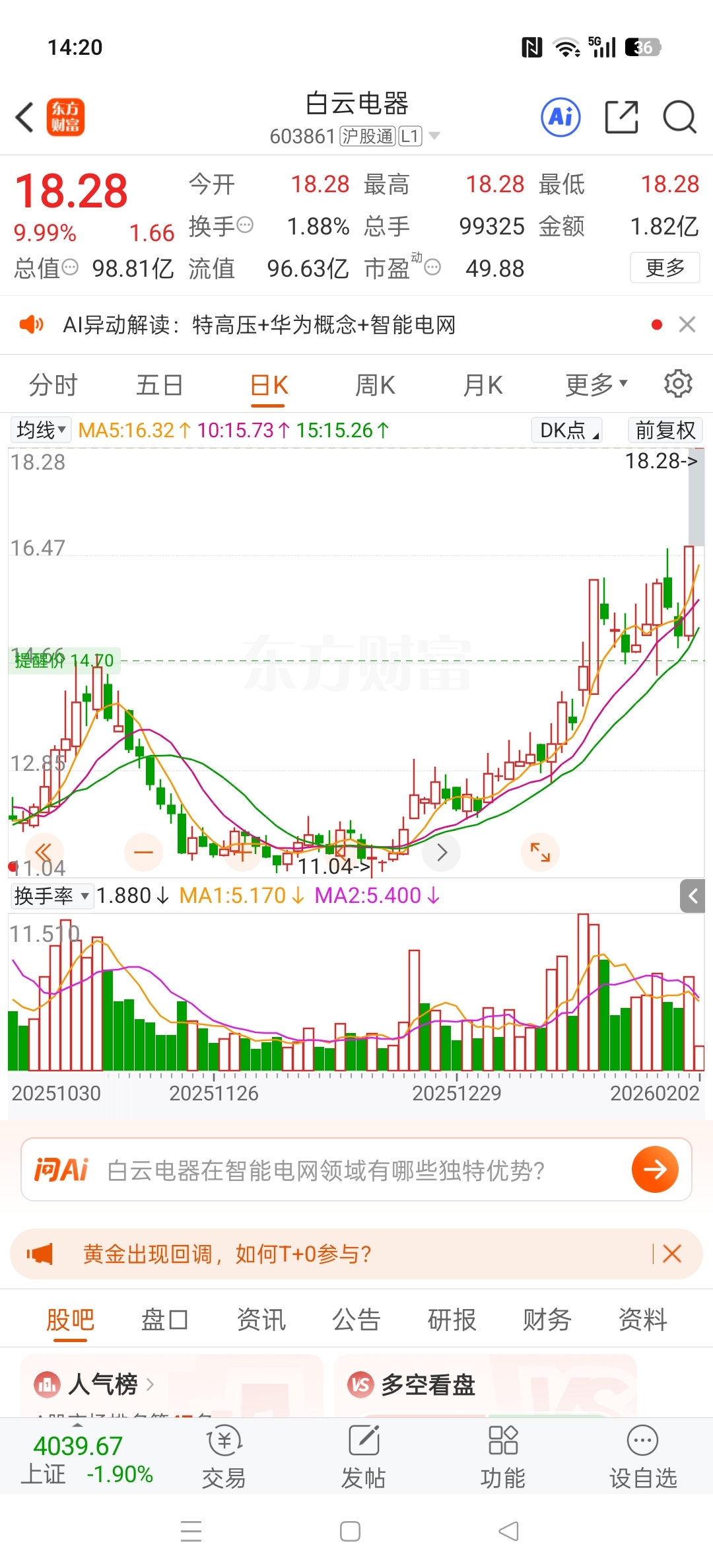 $白云电器(SH603861)$ 吊颈线突破回踩没买的还连板了,和上次真爱美家差不多,低开突破回踩