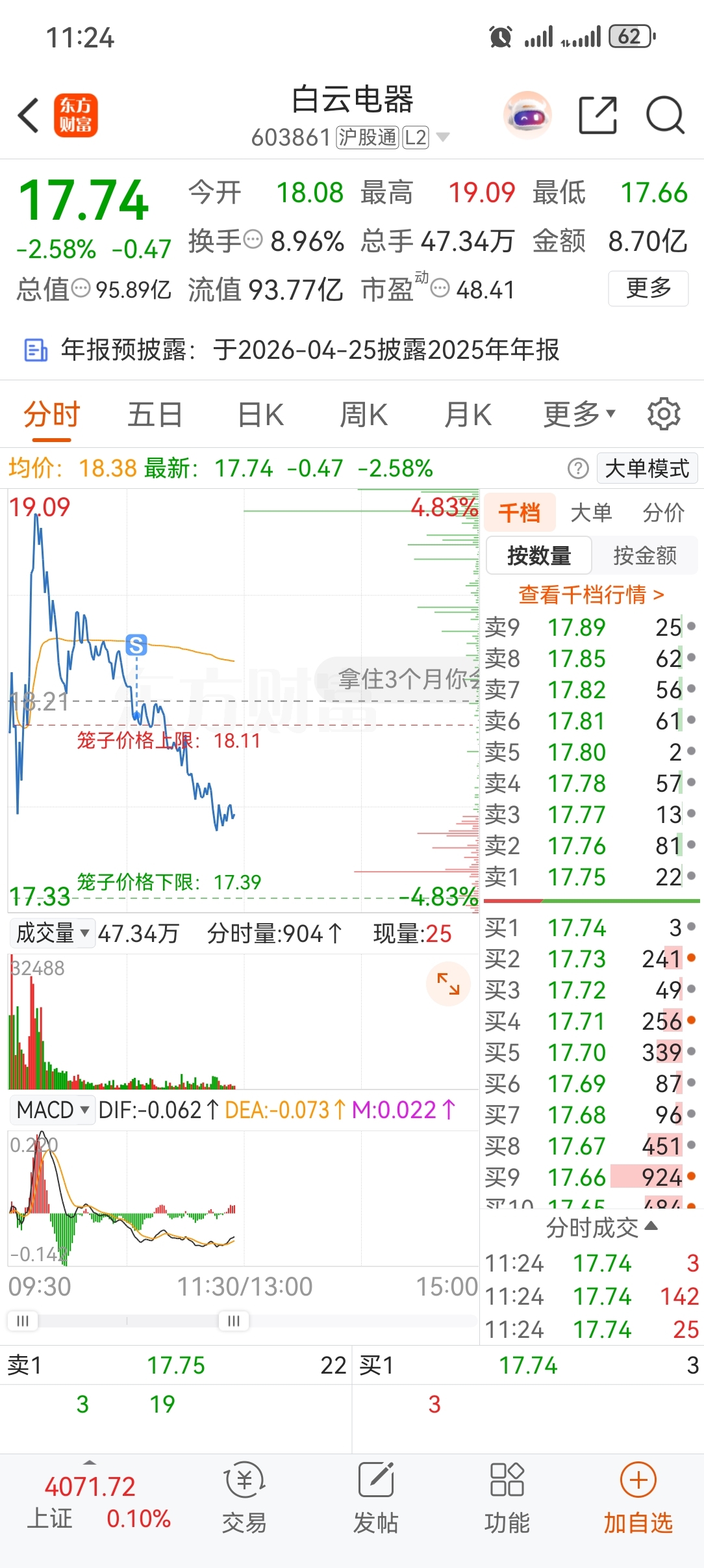 $白云电器(SH603861)$ 散户抱有幻想就像我一样,想着它会冲击涨停价再下来出货,也感谢主力今天没跌停开,今天都打算止损5个点的