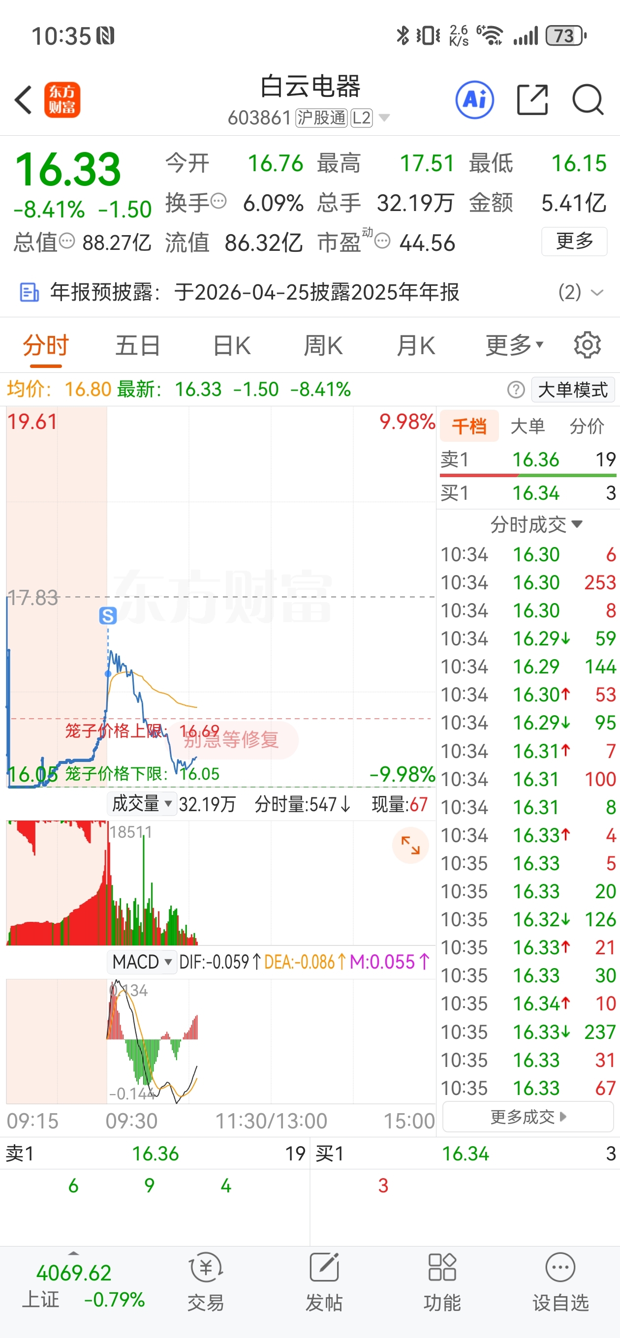 $白云电器(SH603861)$ 开盘有多人说抄底的