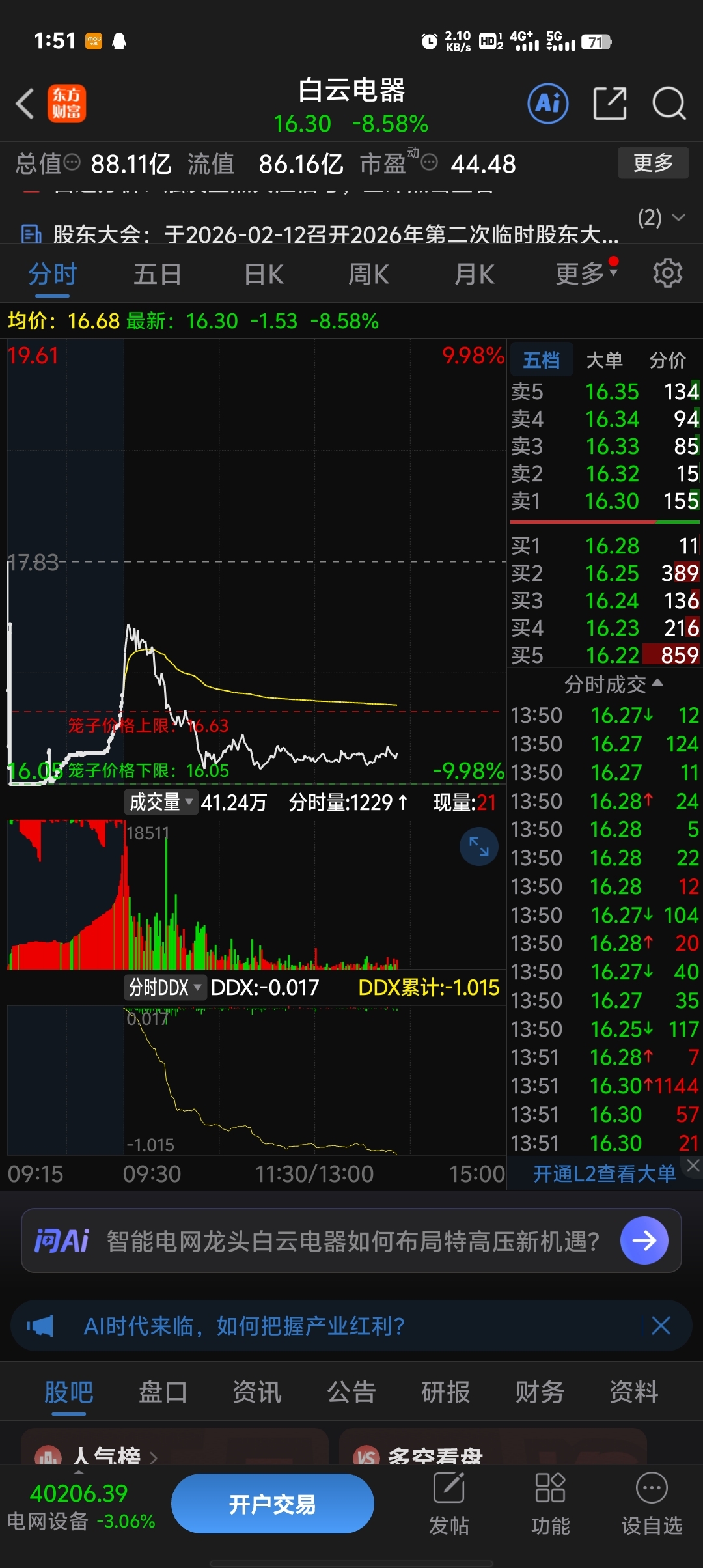 $白云电器(SH603861)$ 对 吃的好 压盘的就要 肆