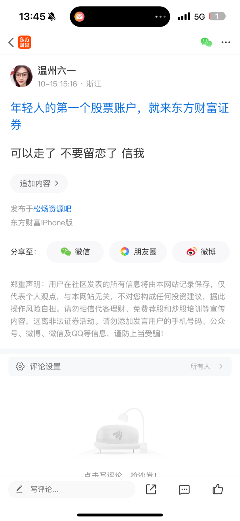 温馨提示: 1.根据《证券法》规定,禁止编造、传播虚假信息或者误导性信息,扰乱证券市场;2.用户在本社区发表的所有资料、言论等仅代表个人观点,与本网站立场无关,不对您构成任何投资建议。用户应基于自己的独立判断,自行决定证券投资并承担相应风险。《东方财富社区管理规定》