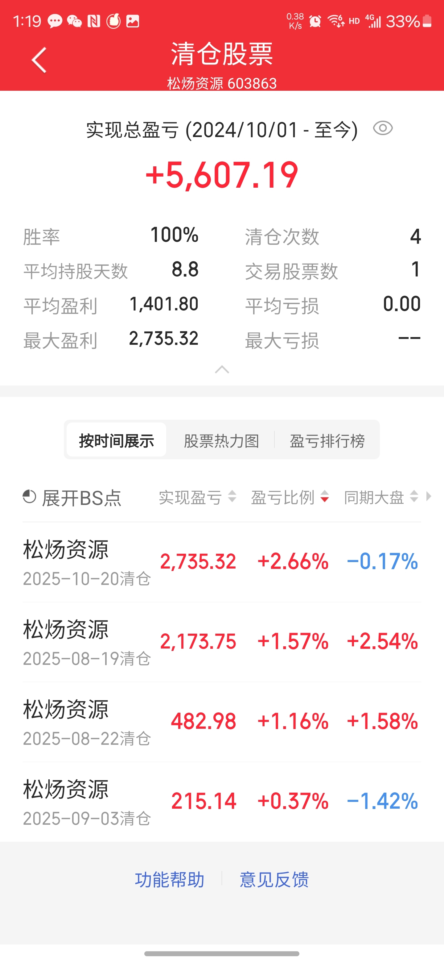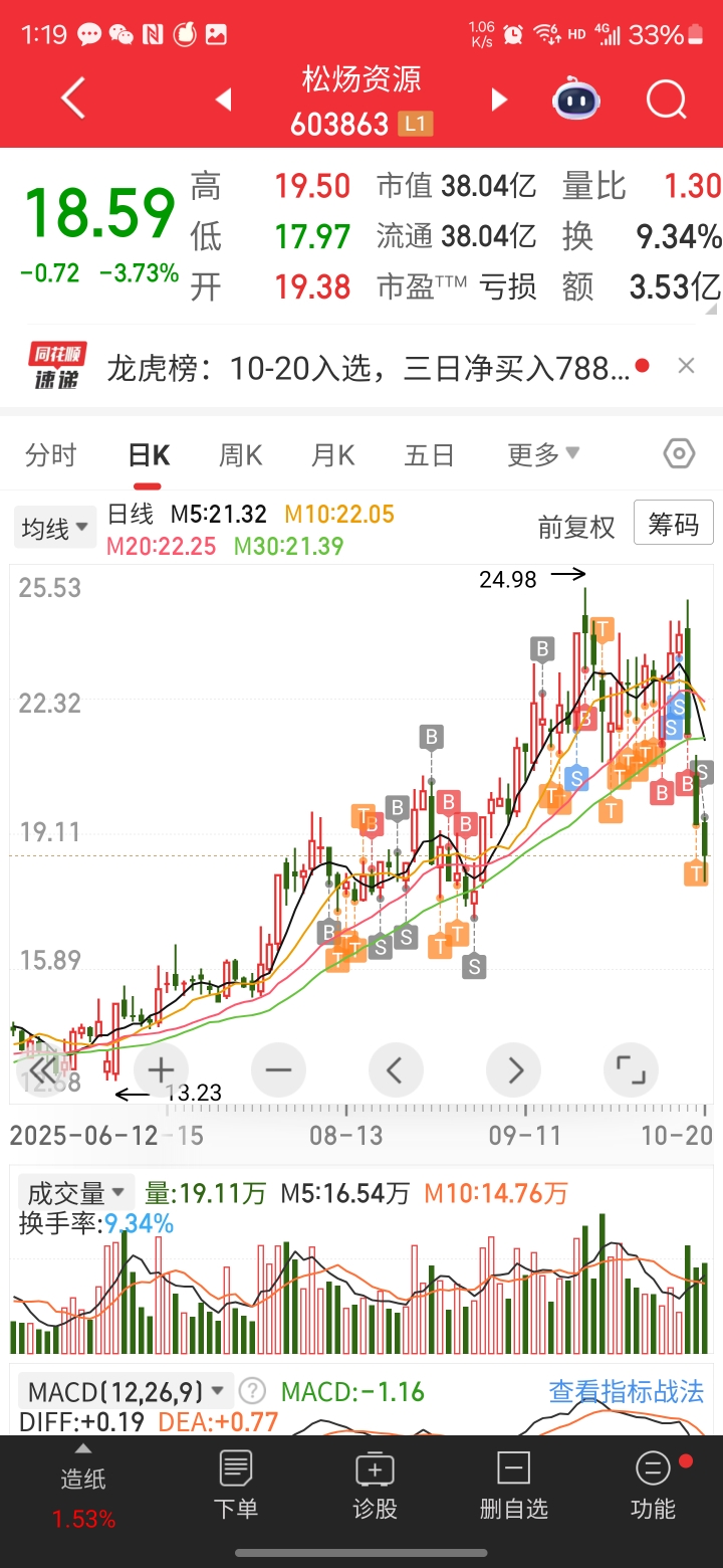 松子,四进四出,没有亏,但是盈利回撤了2w,还是有一点感恩吧!回见!我去别的股了